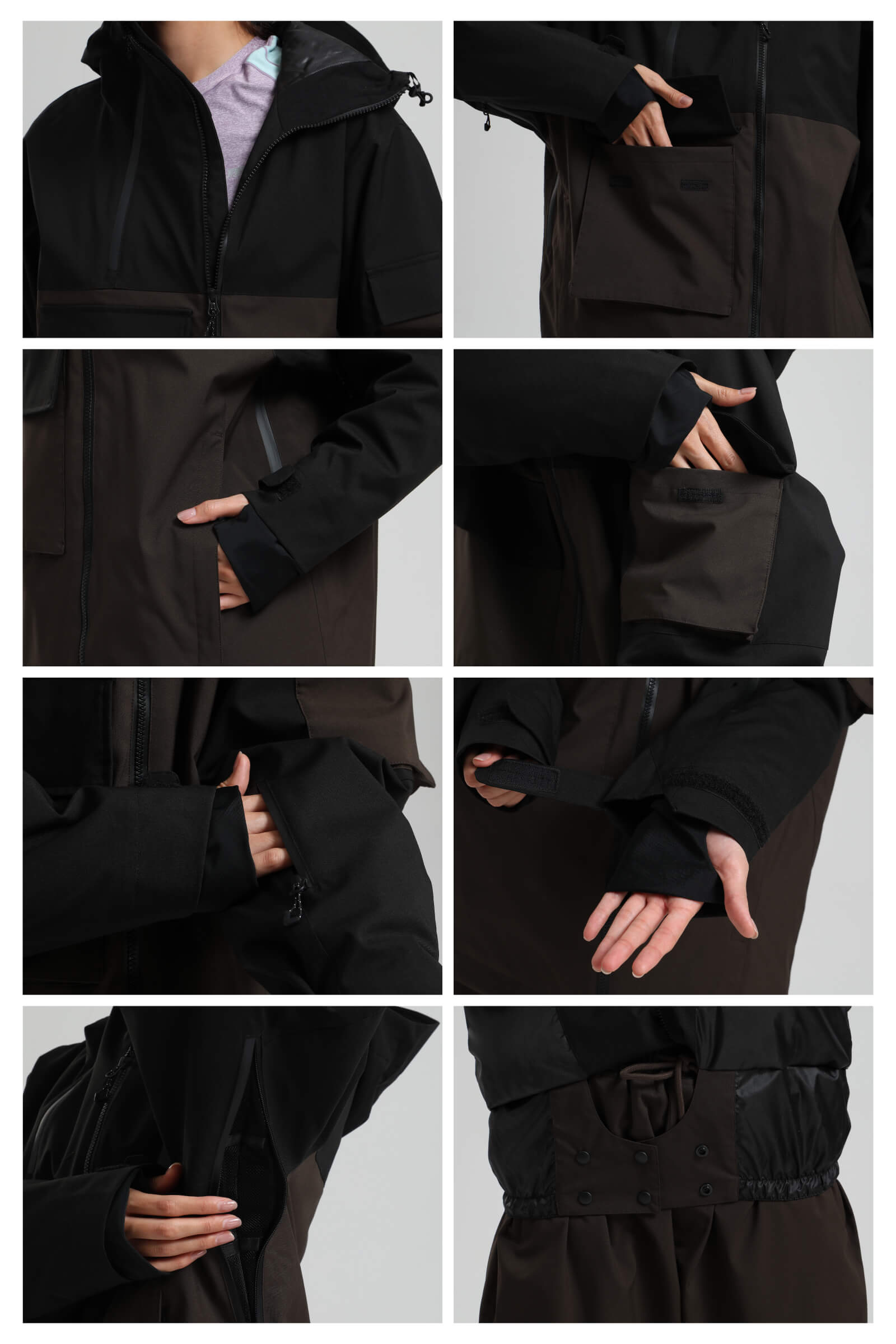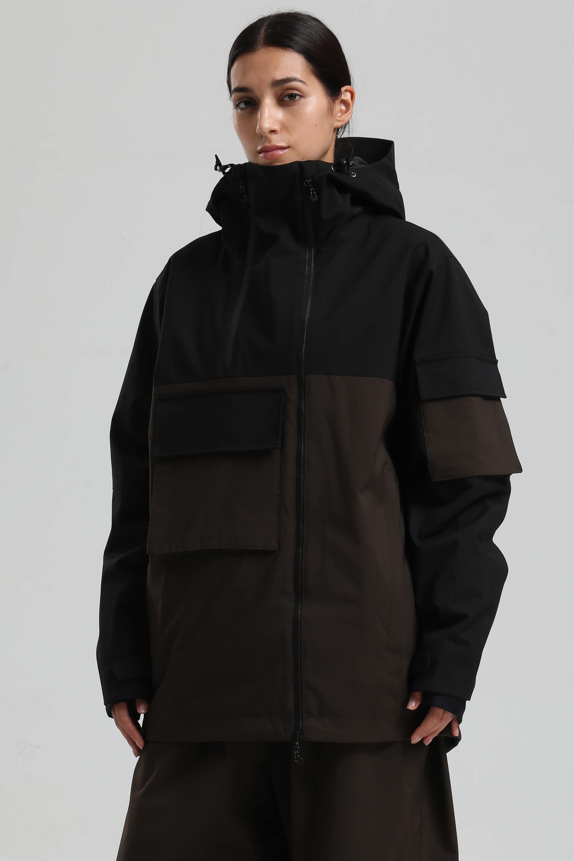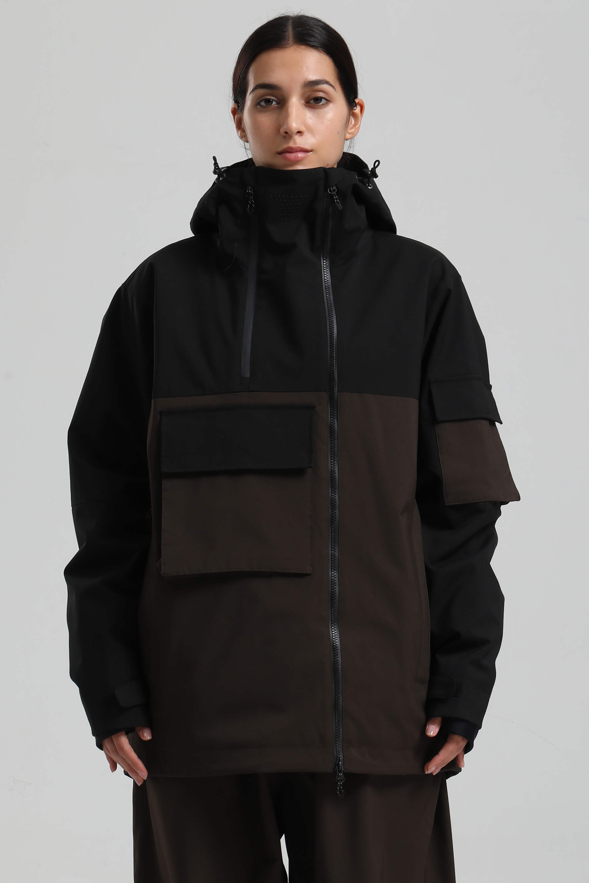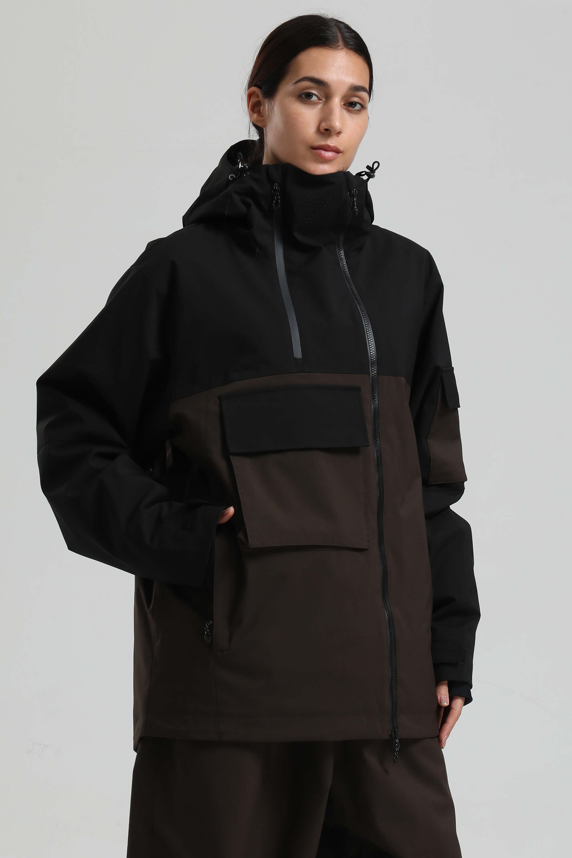 Women's Black & Coffee Asym-Zip Snow Jacket Utility Pocket Waterproof Ski Jacket - Gsou Snow