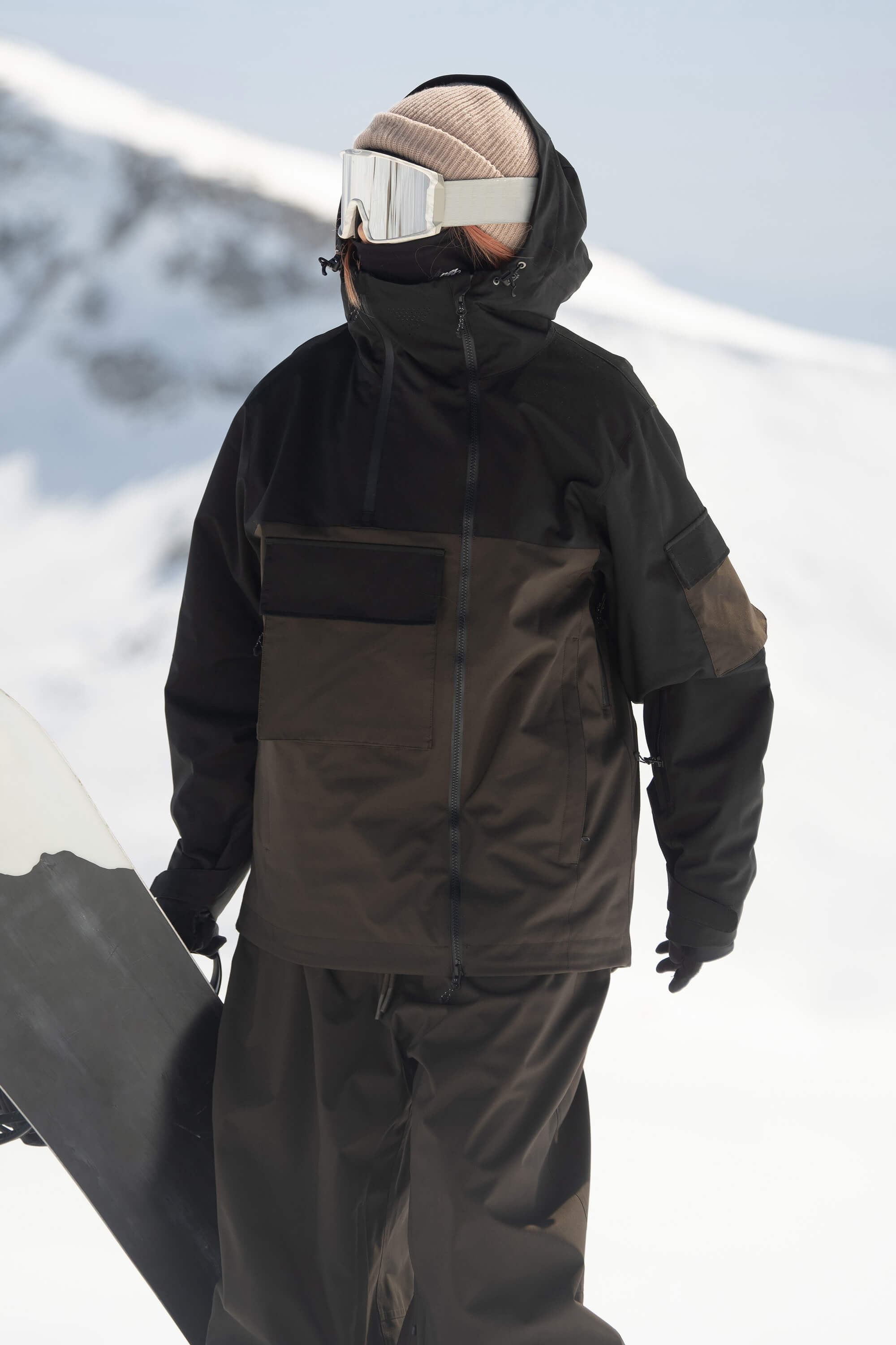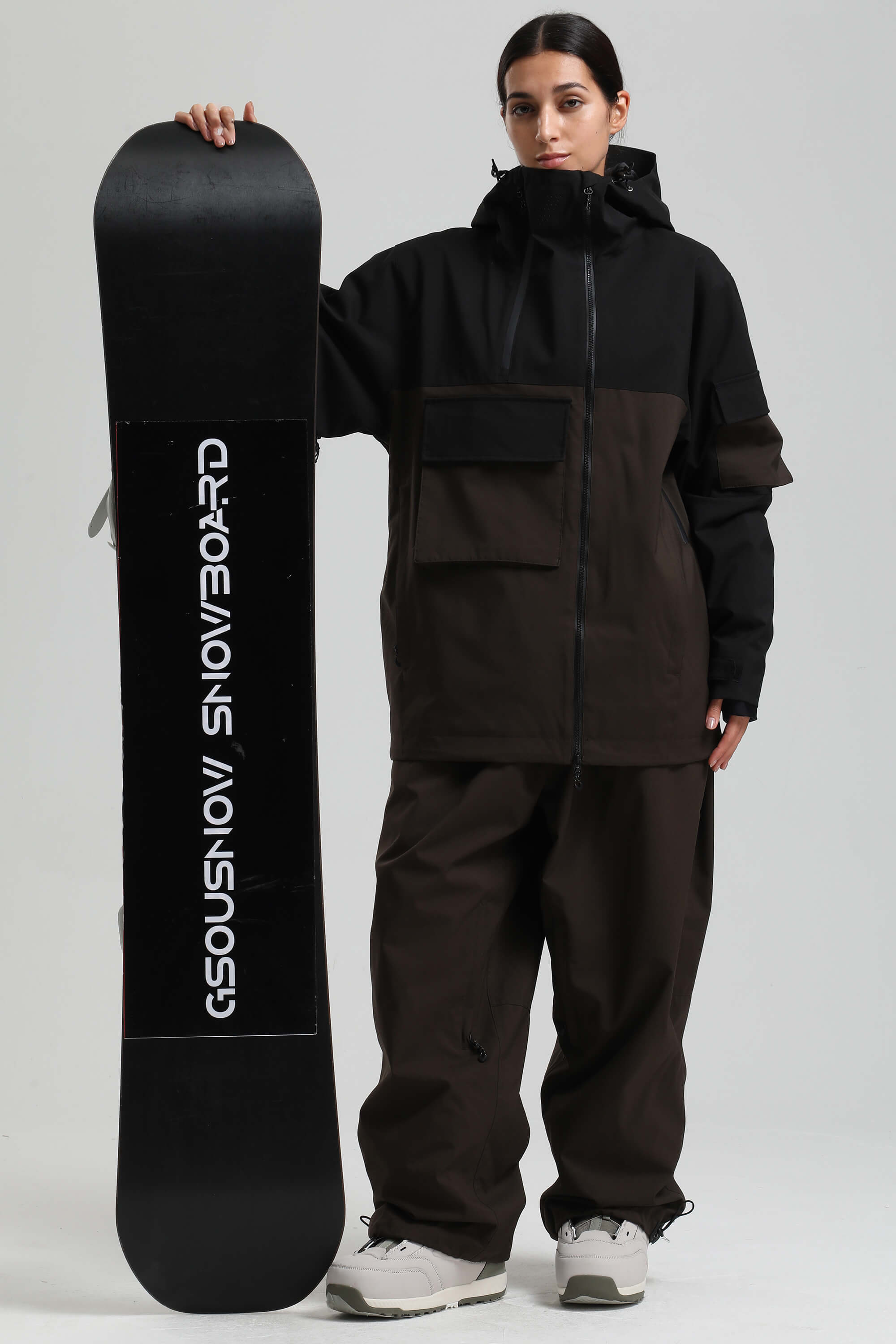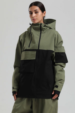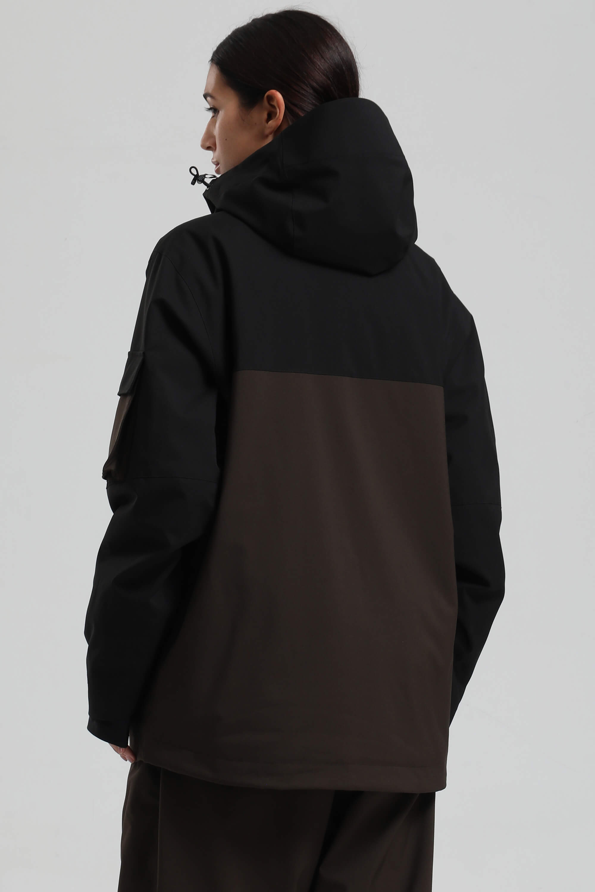 Women's Black & Coffee Asym-Zip Snow Jacket Utility Pocket Waterproof Ski Jacket - Gsou Snow