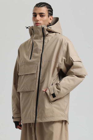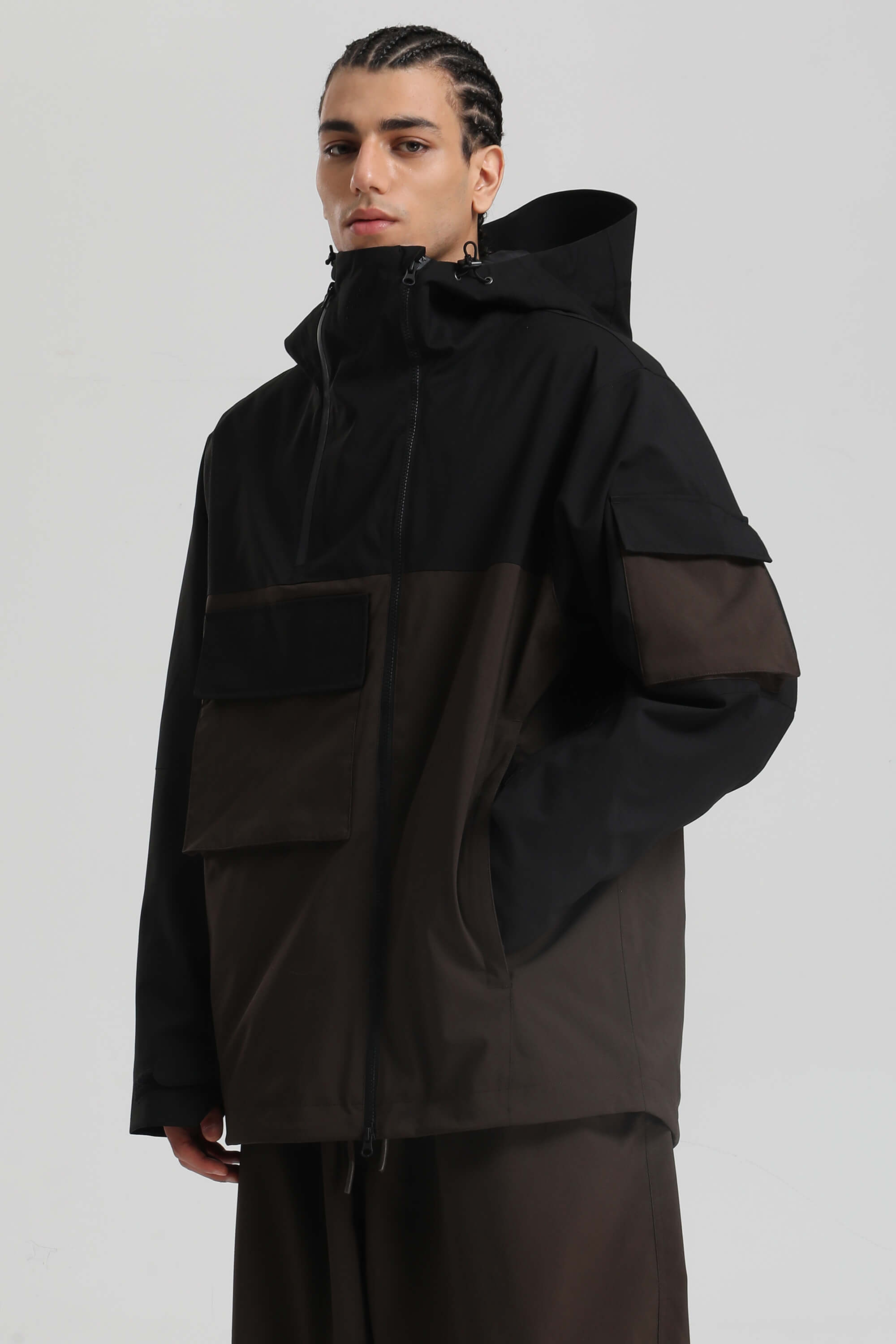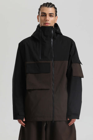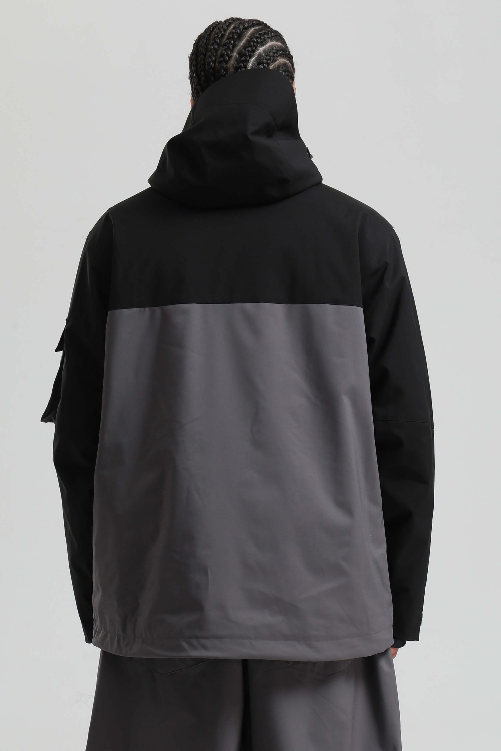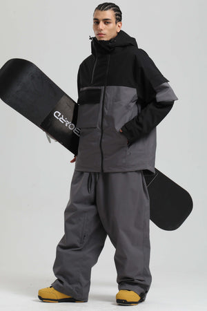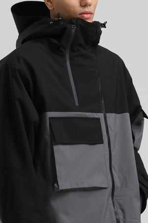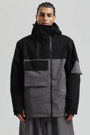 Men's Black & Grey Asym-Zip Snow Jacket Utility Pocket Waterproof Ski Jacket - Gsou Snow