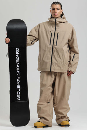 Men's Khaki Multi-Pocket Dual-Vent Snow Jacket Waterproof Insulated Ski Jacket - Gsou Snow