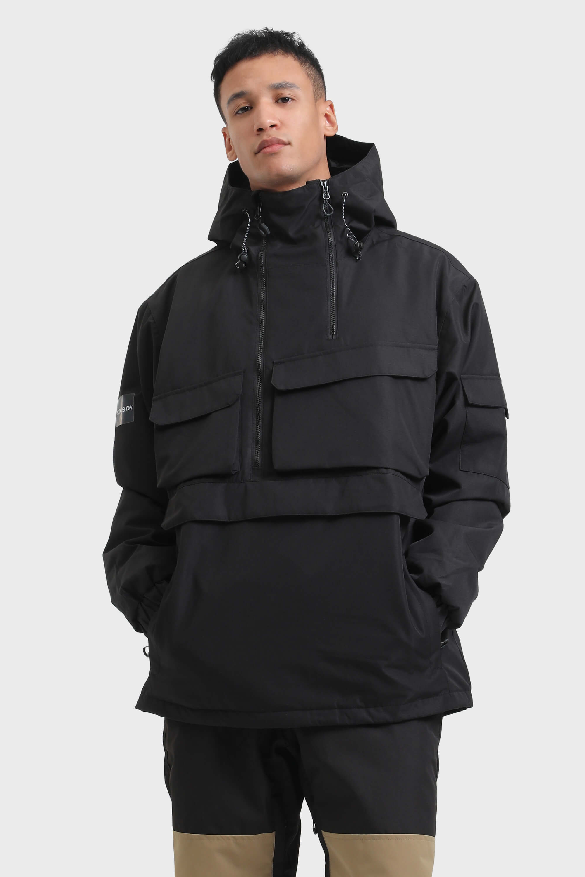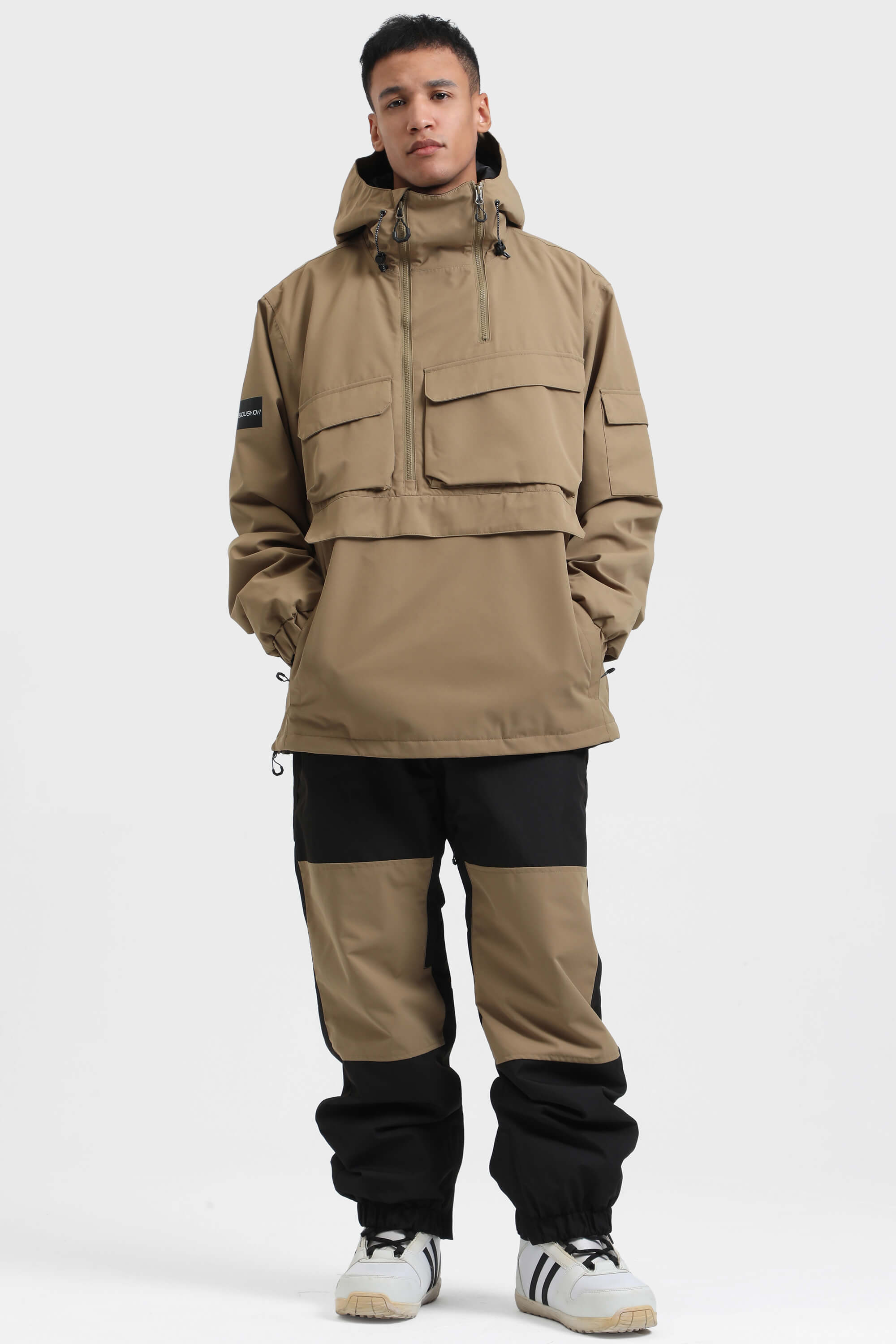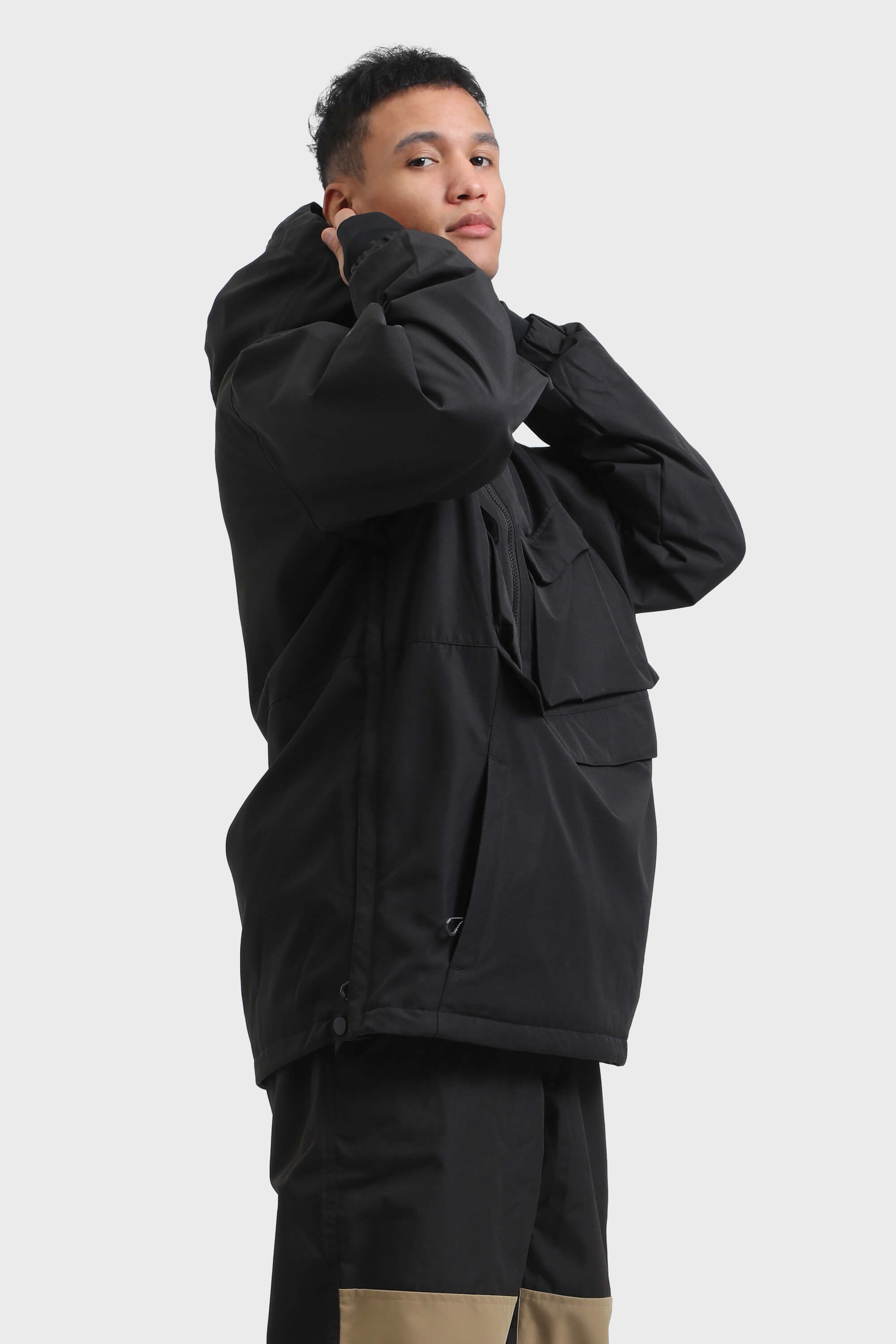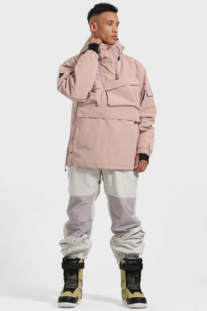 Men's Pink Asymmetrical Kangaroo Pocket Snow Anoraks Waterproof Insulated Ski Anoraks - Gsou Snow