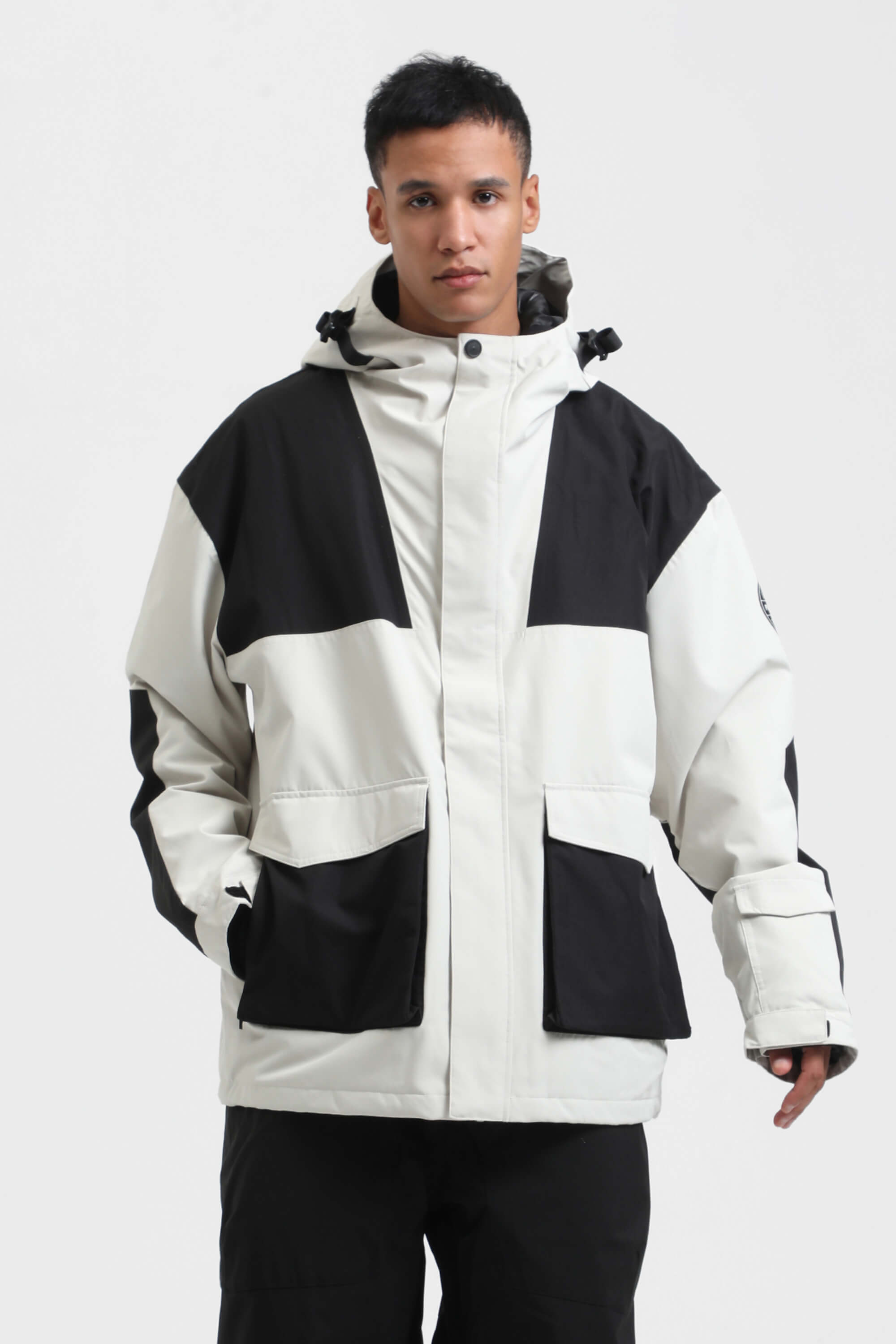 Men's White & Black Abrasion Resistant Waterproof Snow Jacket Insulated Softshell Ski Jacket - Gsou Snow