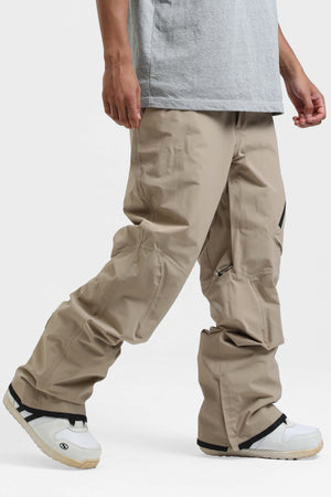 Men's Khaki Multi-Pocket Venting Snow Pants Baggy Ski Pants - Gsou Snow