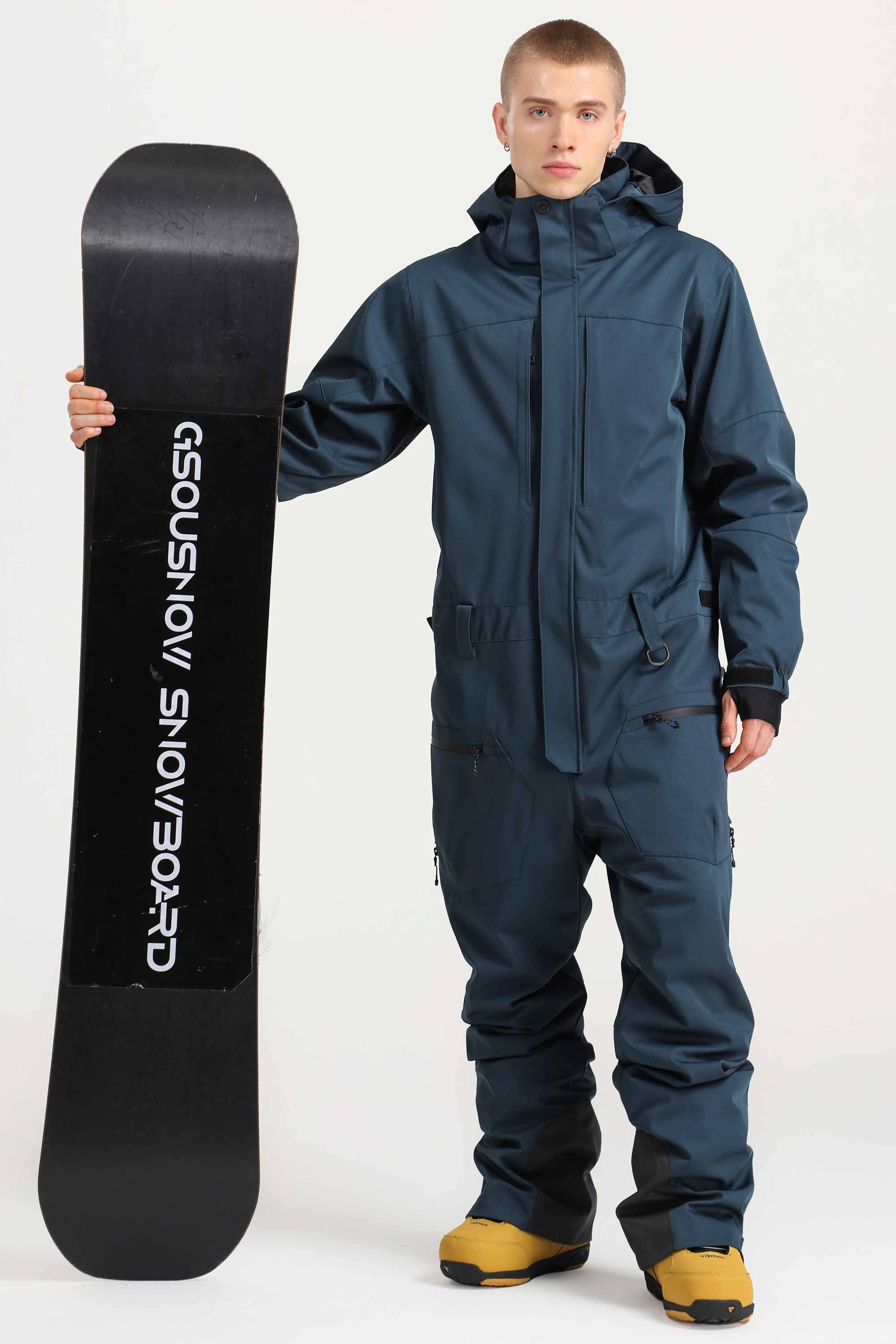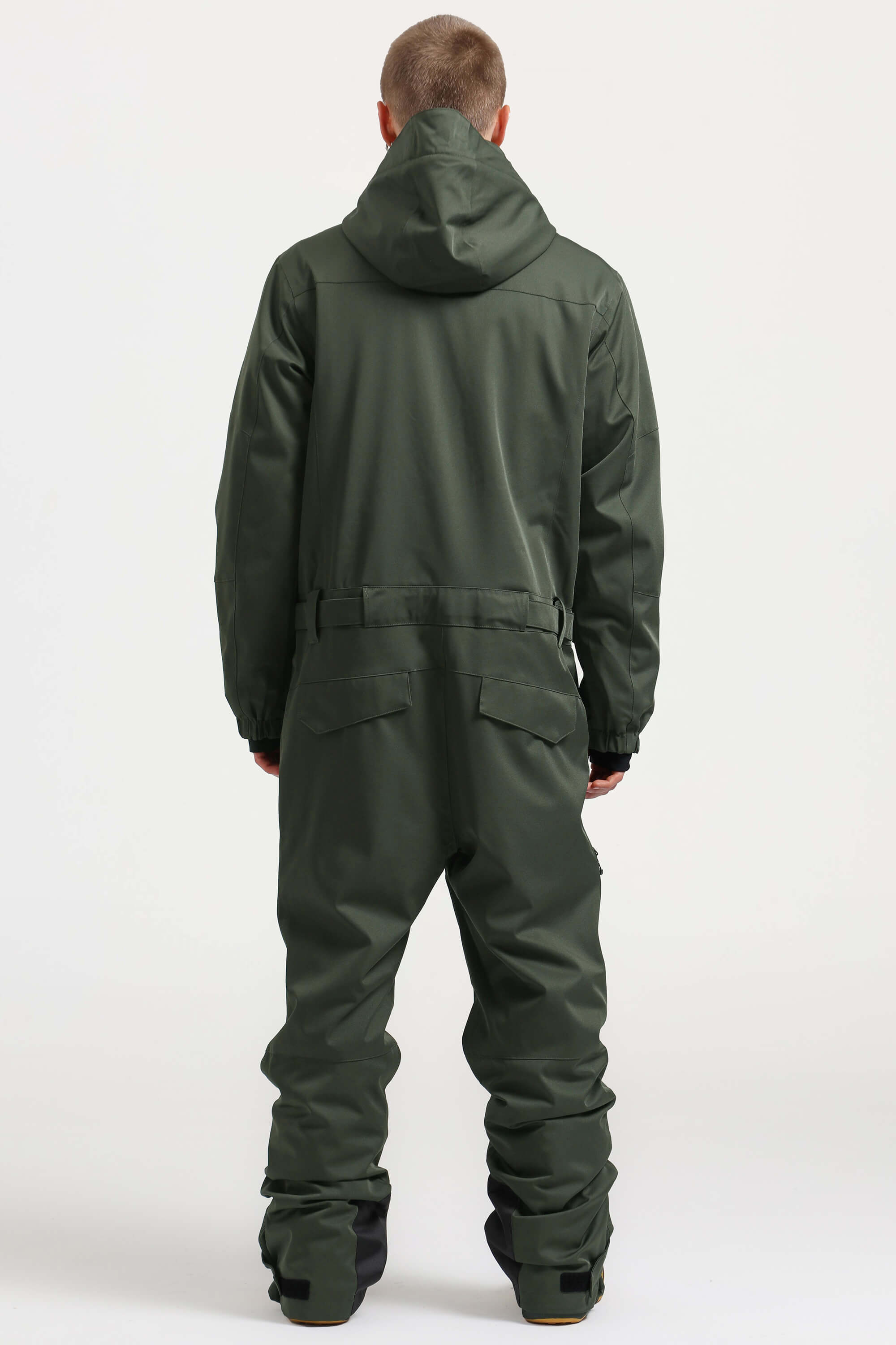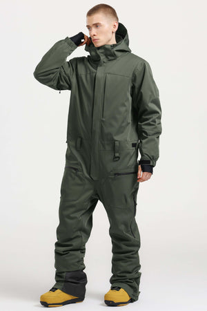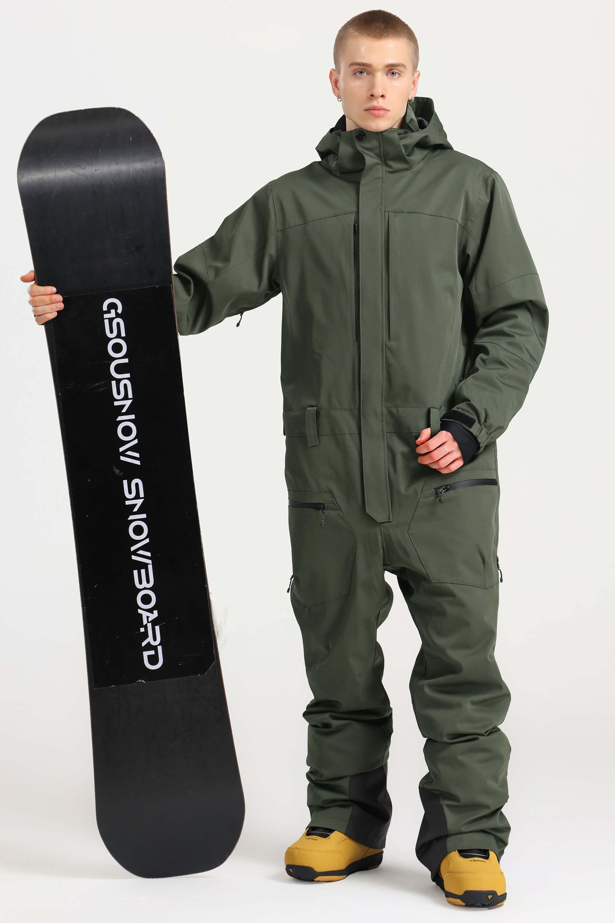 Men's Army Green Stylish Waterproof & Windproof Loose-Fit One-Piece Ski Suit With Detachable Hood & Multipockets Snowboard Suit - Gsou Snow