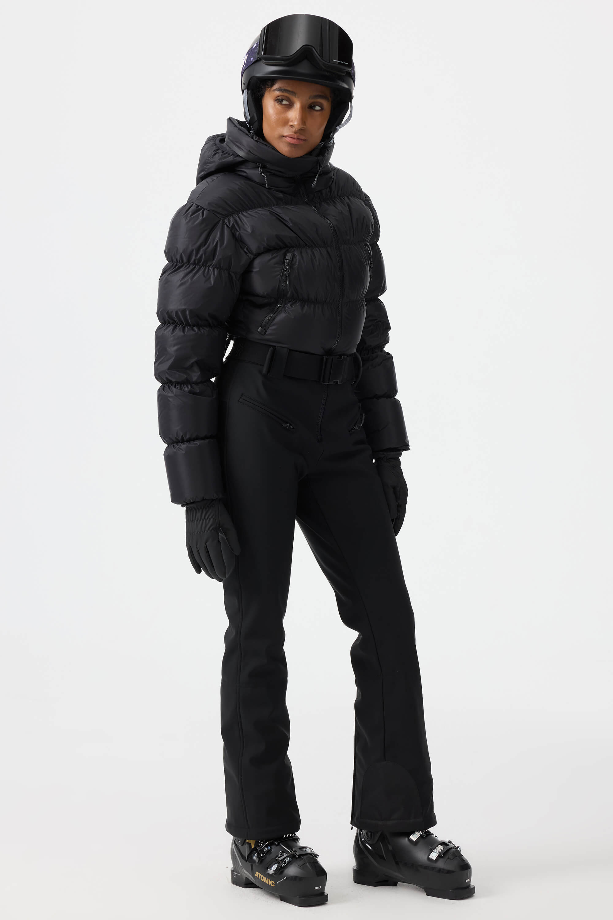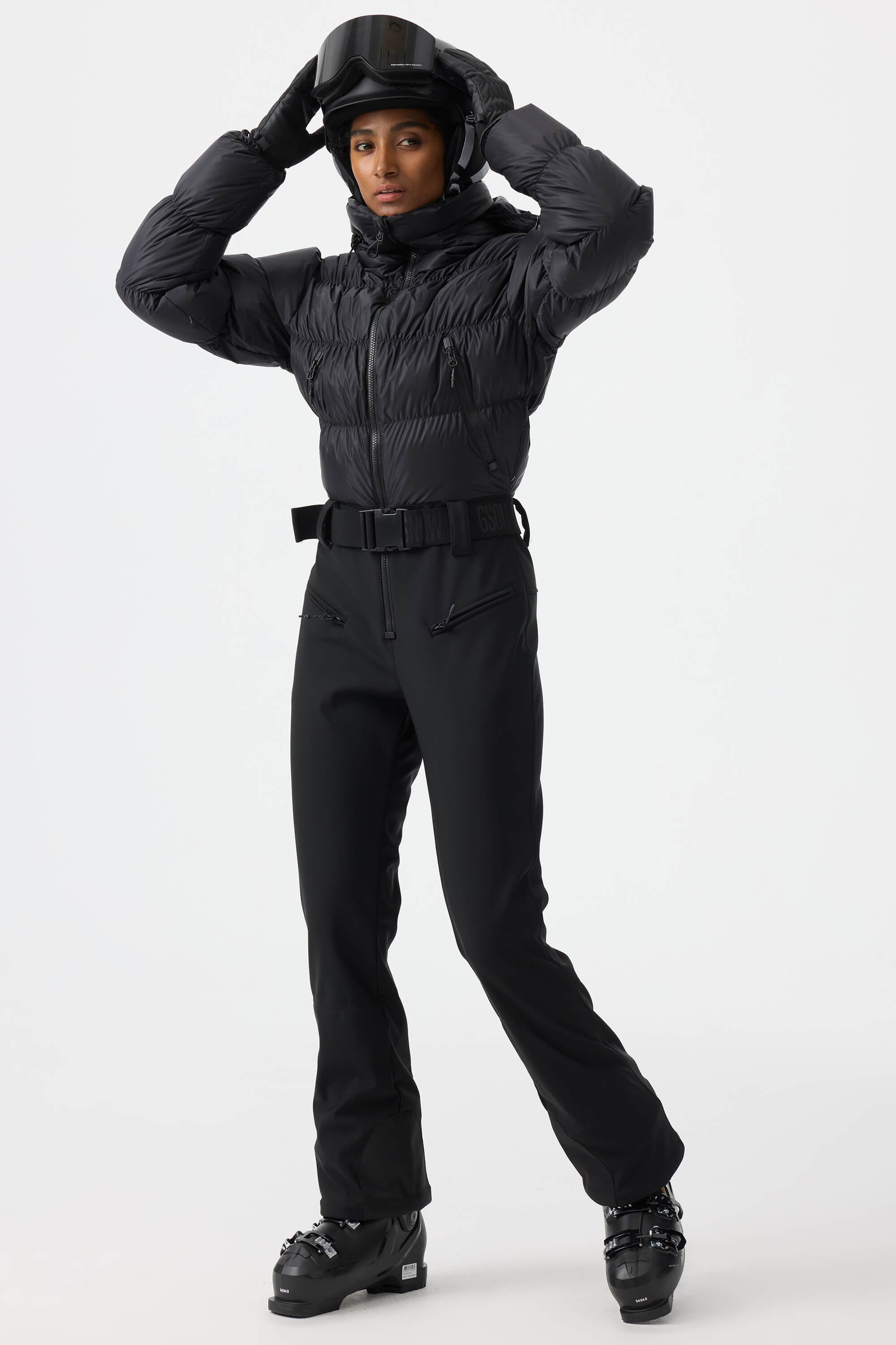 Women's Black Stain-resistant Down Ski Suit One-Piece Snowboard Suit - Gsou Snow