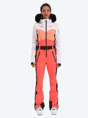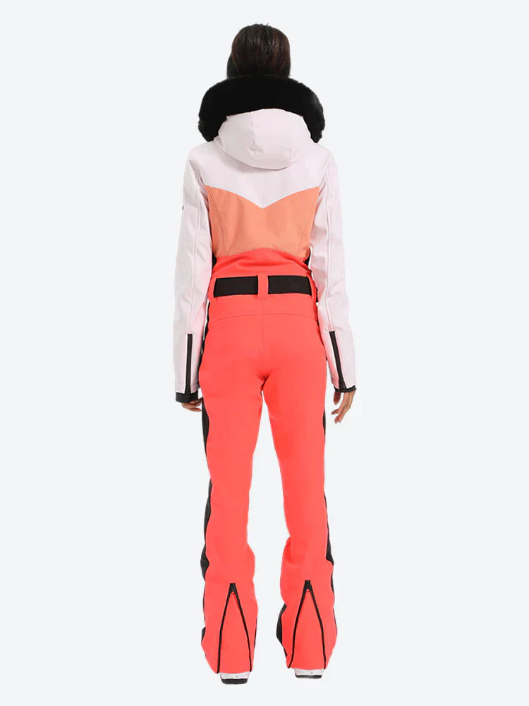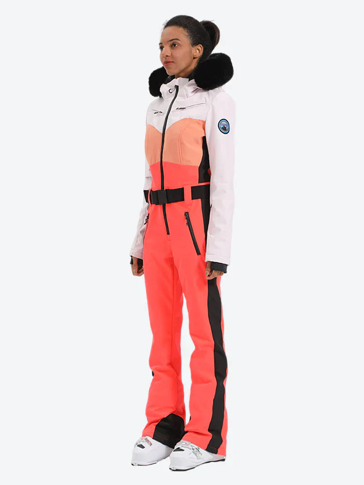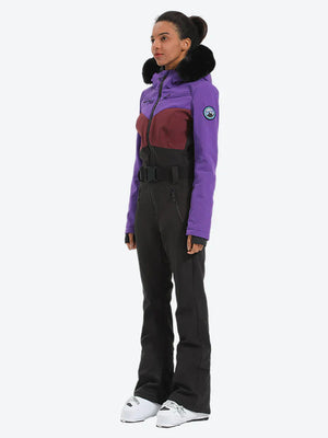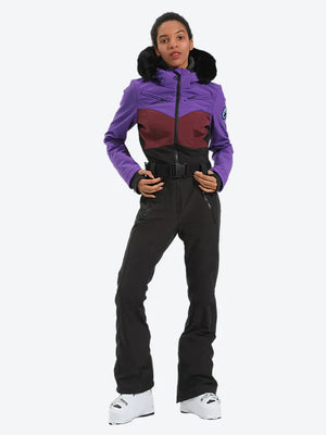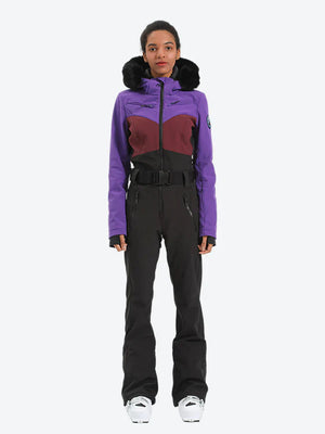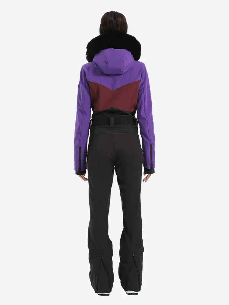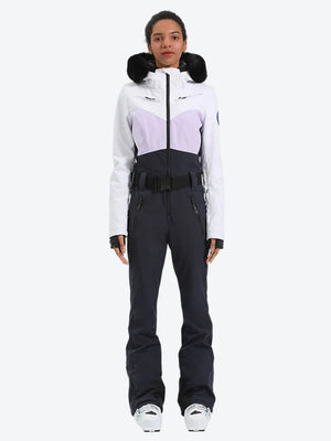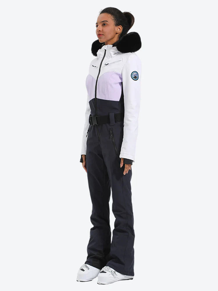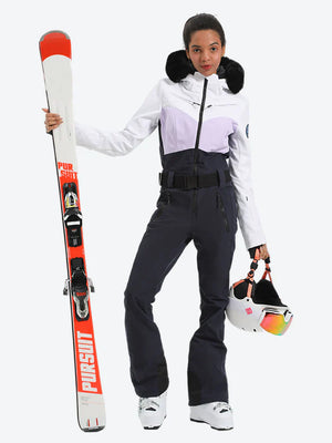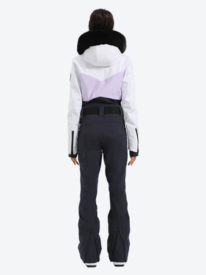 Women's Lavender & Navy Waist-Defining Waterproof Ski Suits Insulated One-Piece Snowboard Suits - Gsou Snow