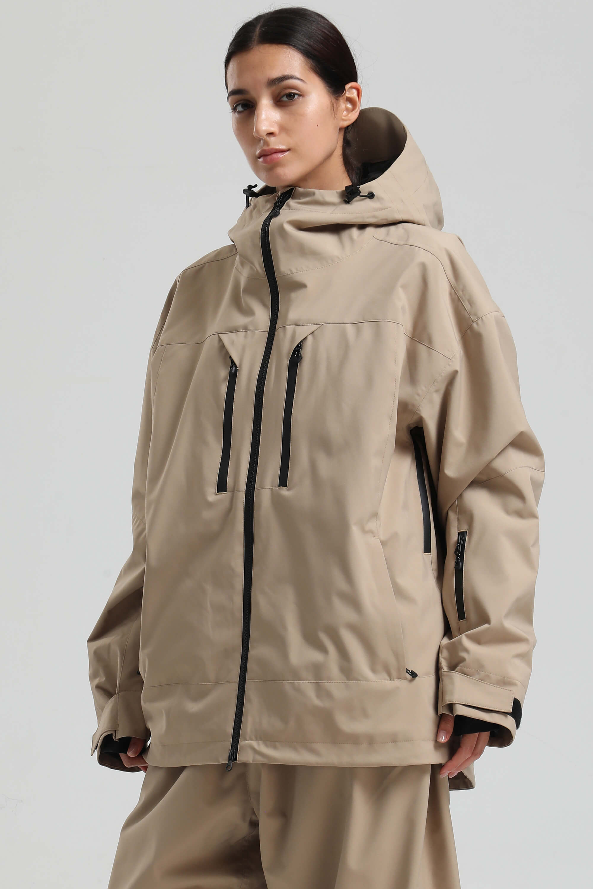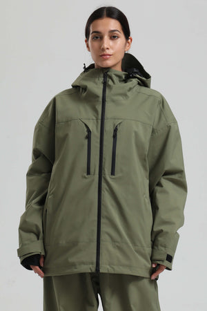 Women's Khaki Multi-Pocket Dual-Vent Snow Jacket Waterproof Insulated Ski Jacket - Gsou Snow