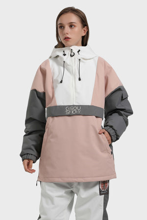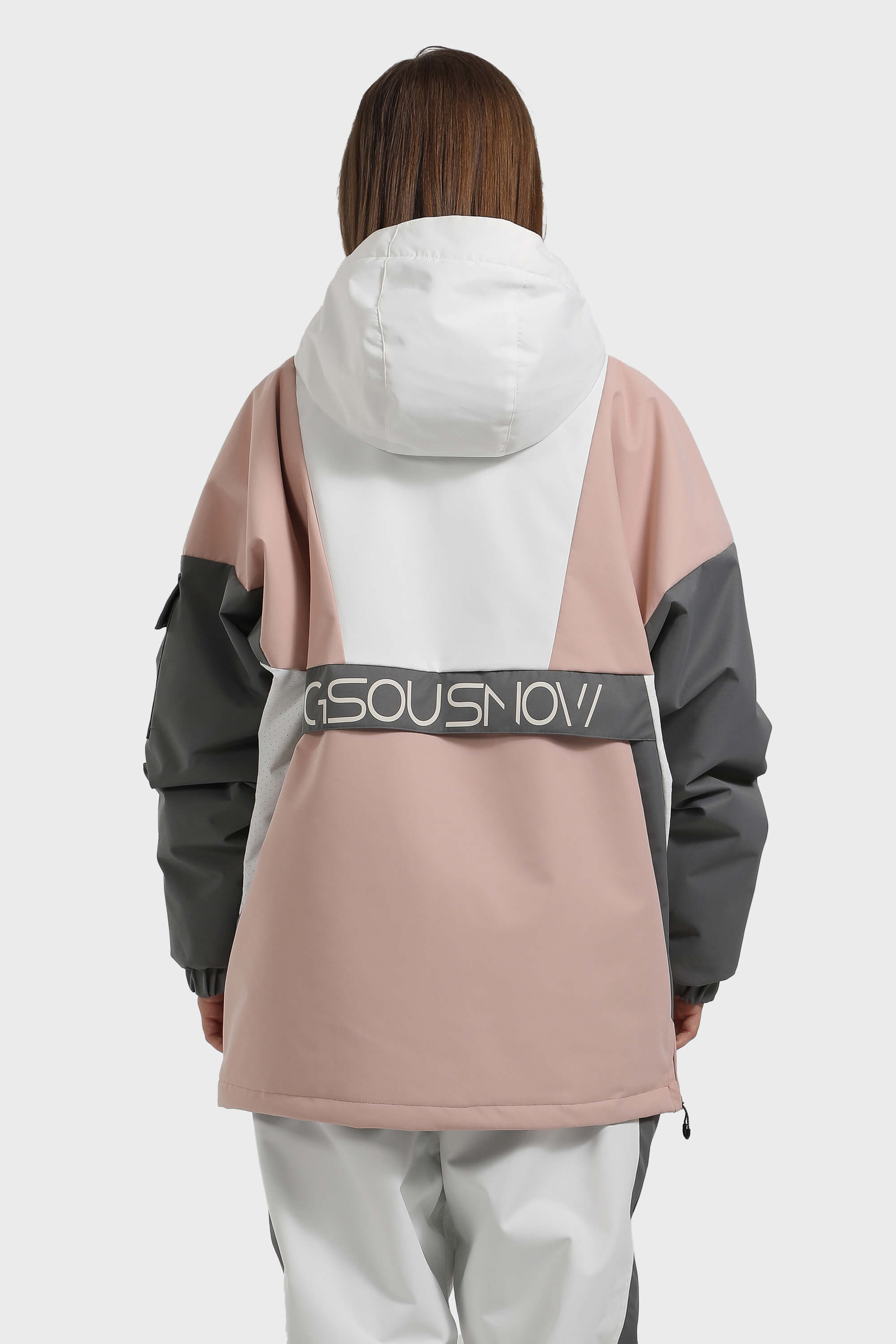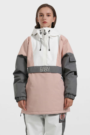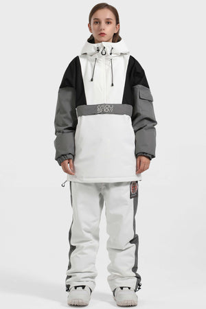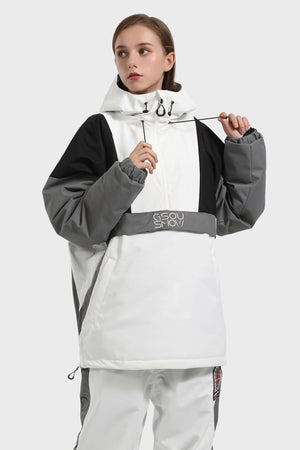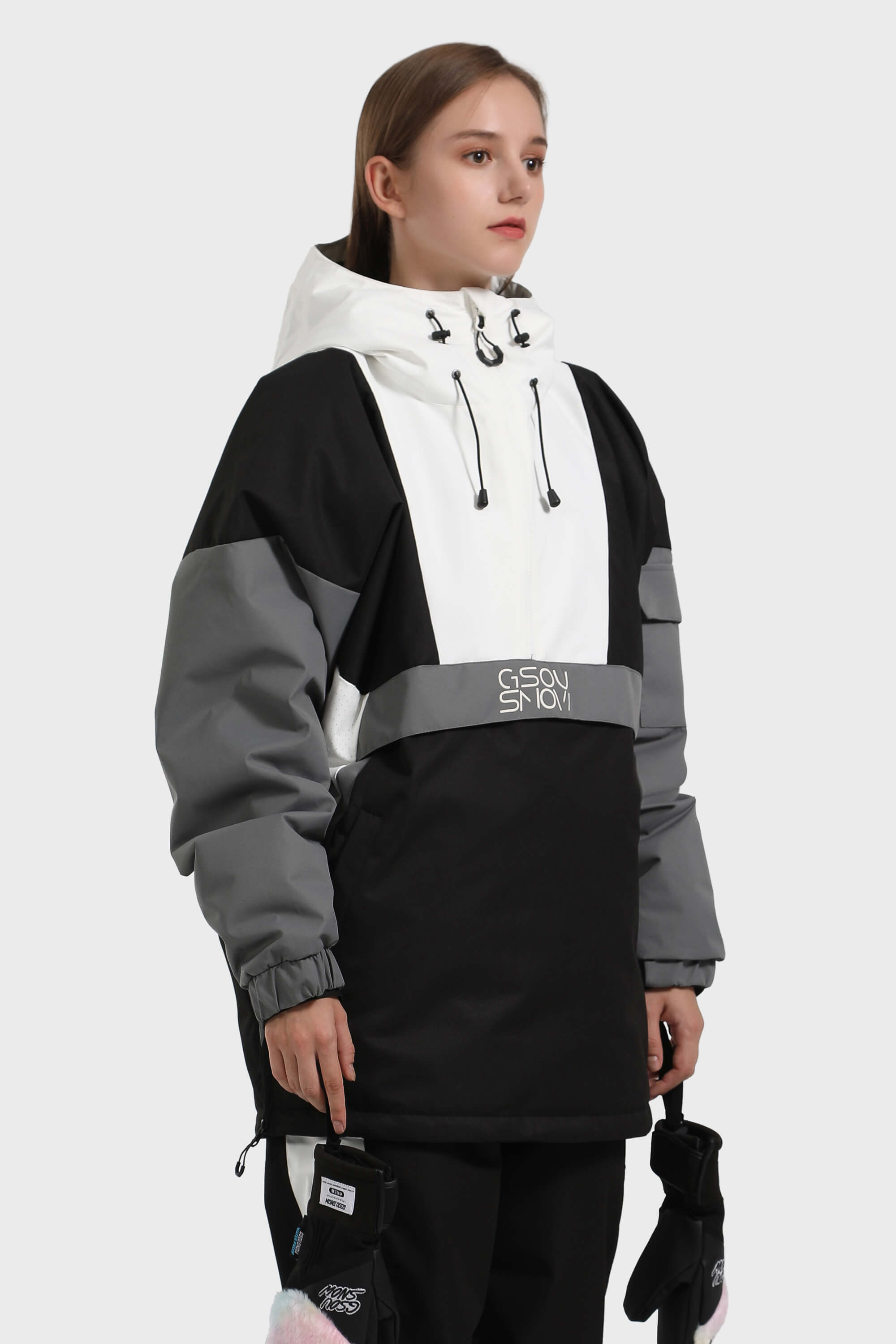 Women's White & Black Kangaroo Pocket Waterproof Snowboard Anoraks Baggy Ski Anoraks - Gsou Snow