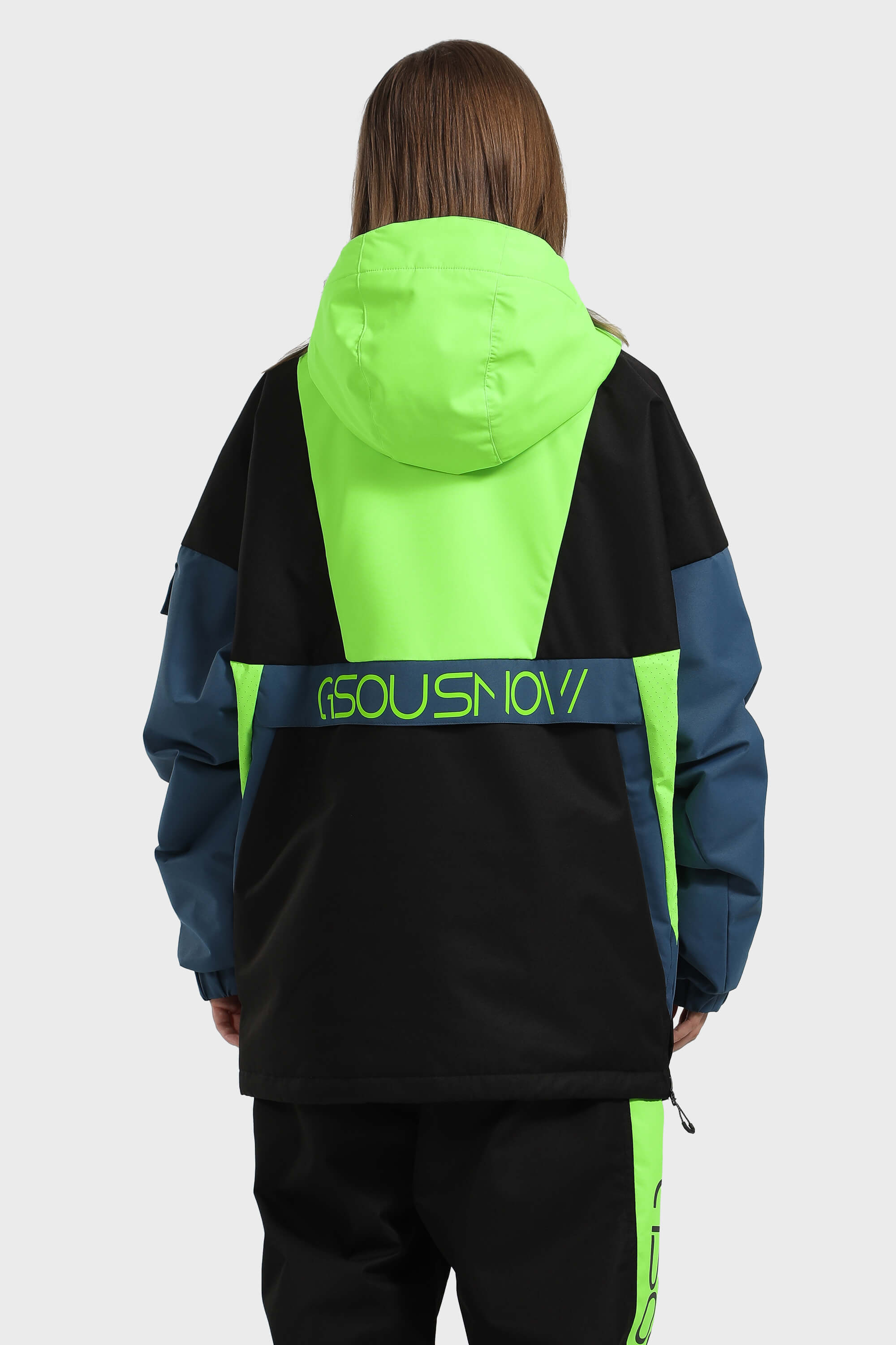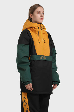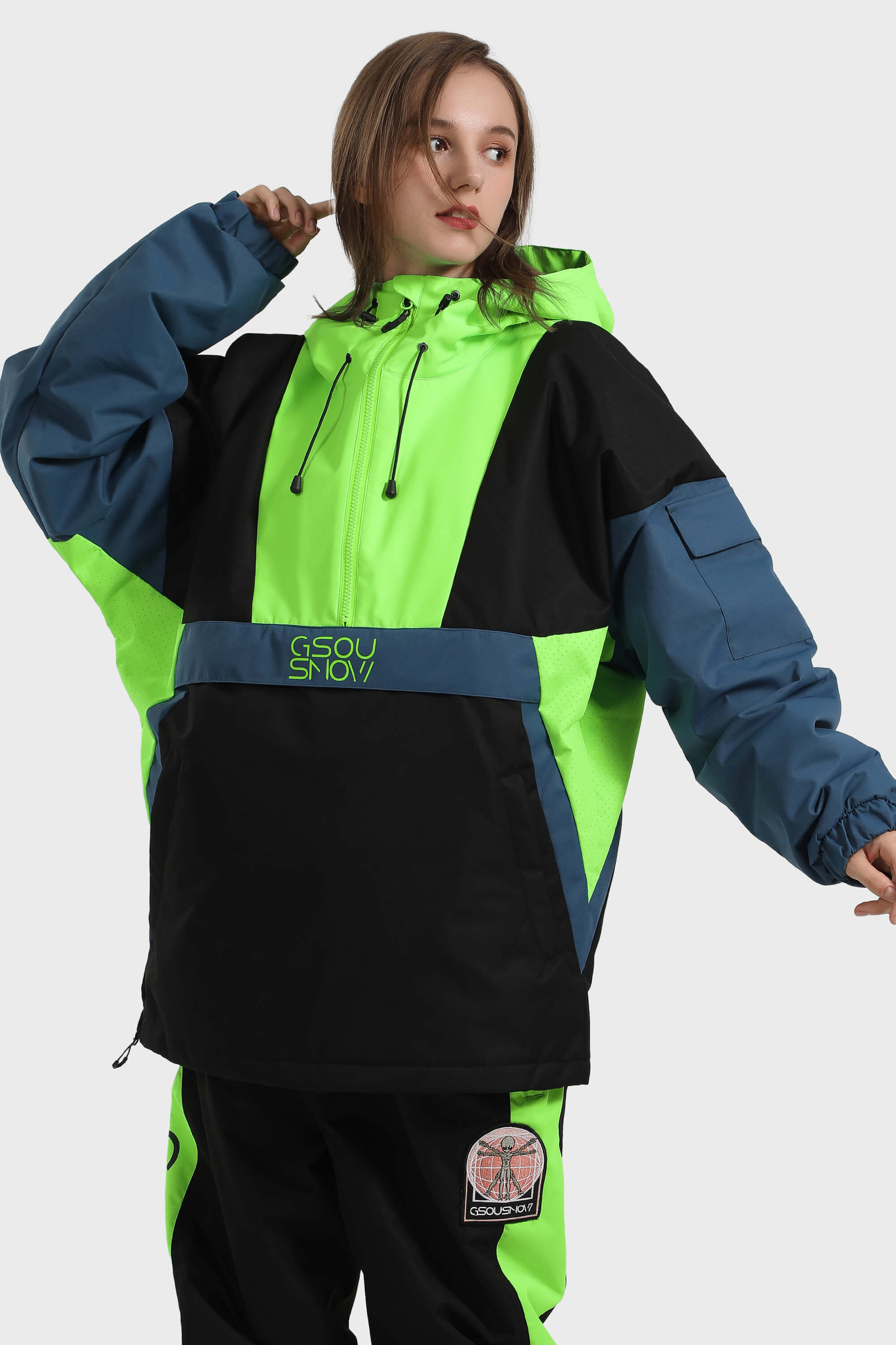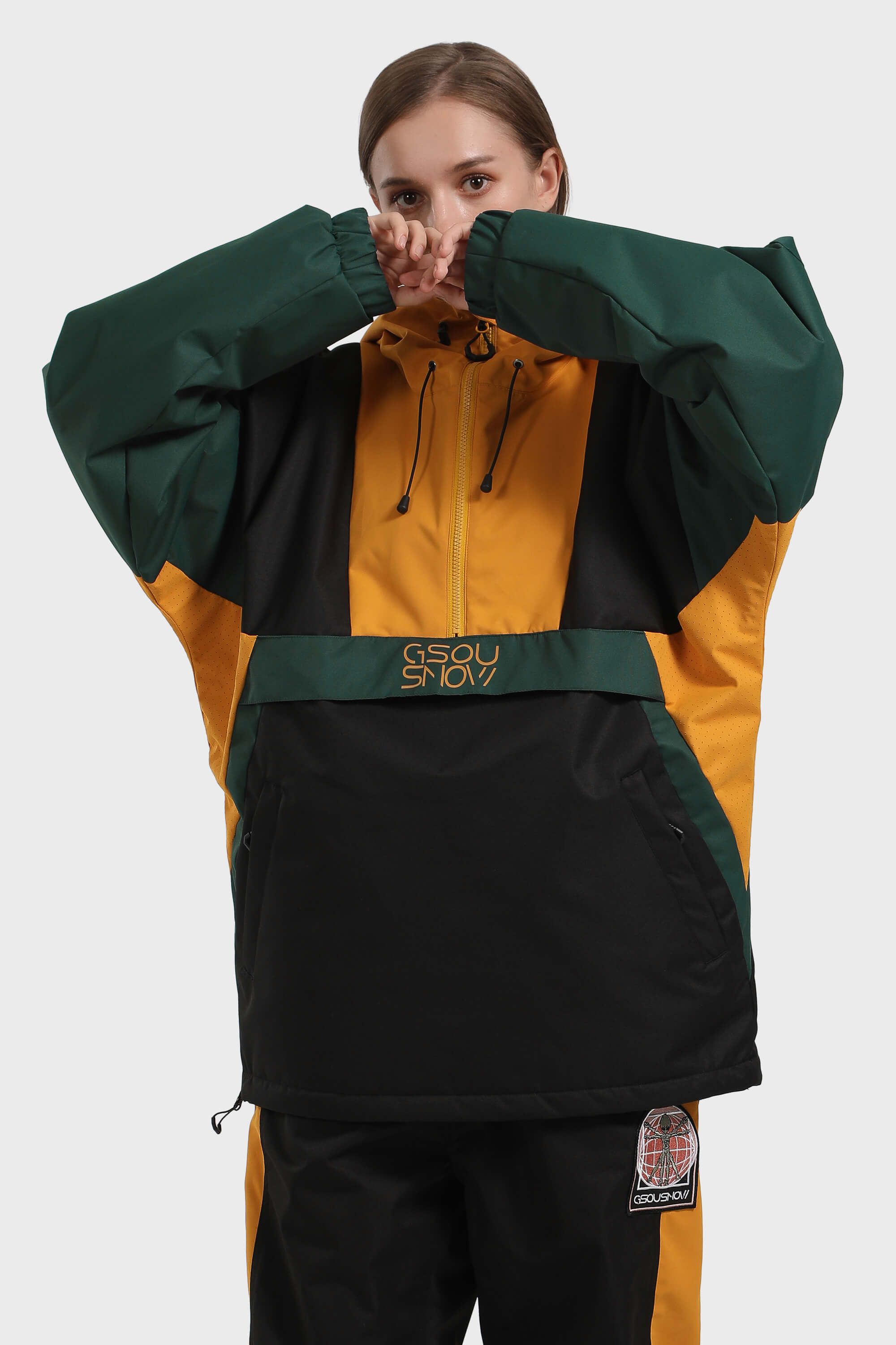 Women's White & Black Kangaroo Pocket Waterproof Snowboard Anoraks Baggy Ski Anoraks - Gsou Snow