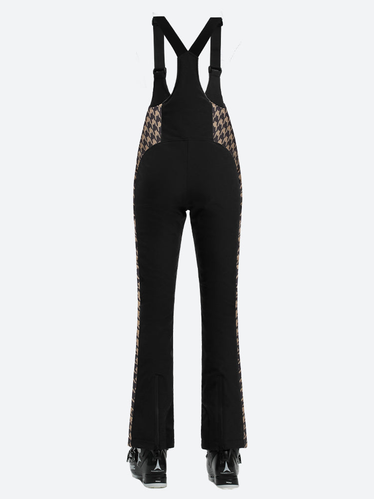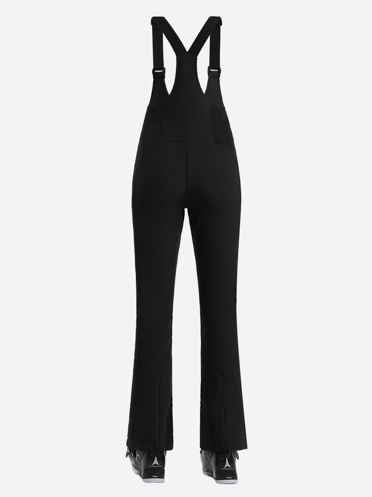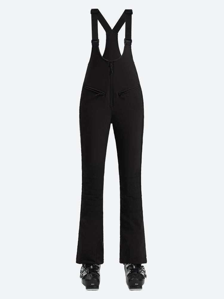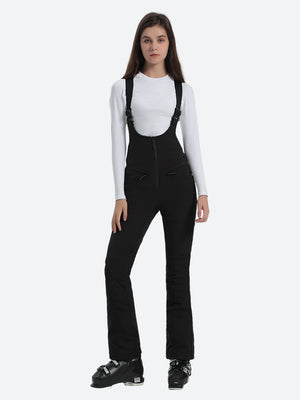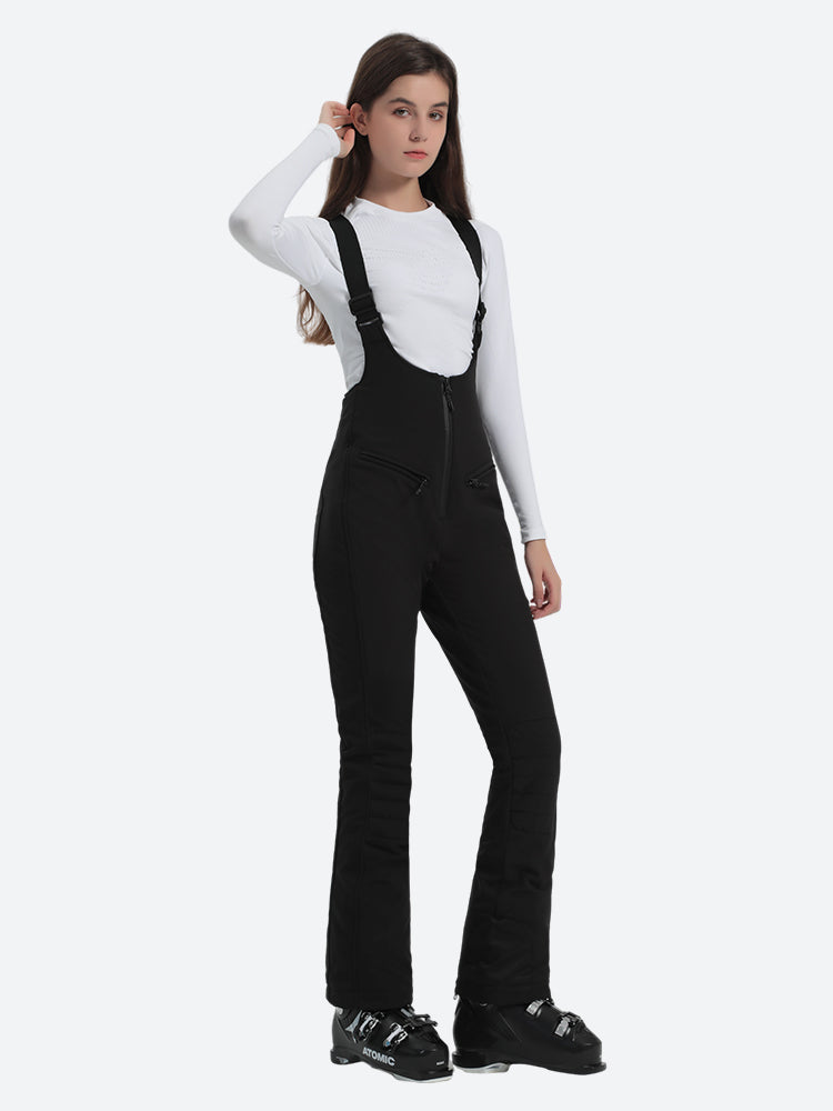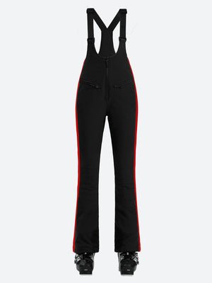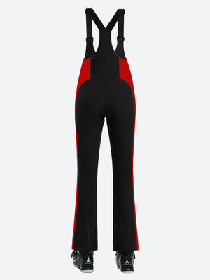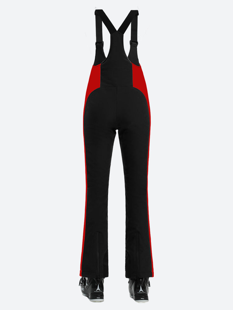 Women's Black & Red Slim-Fit Snow Bibs Articulated Knees Ski Bibs - Gsou Snow