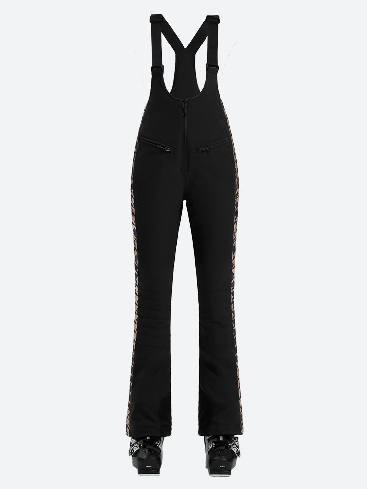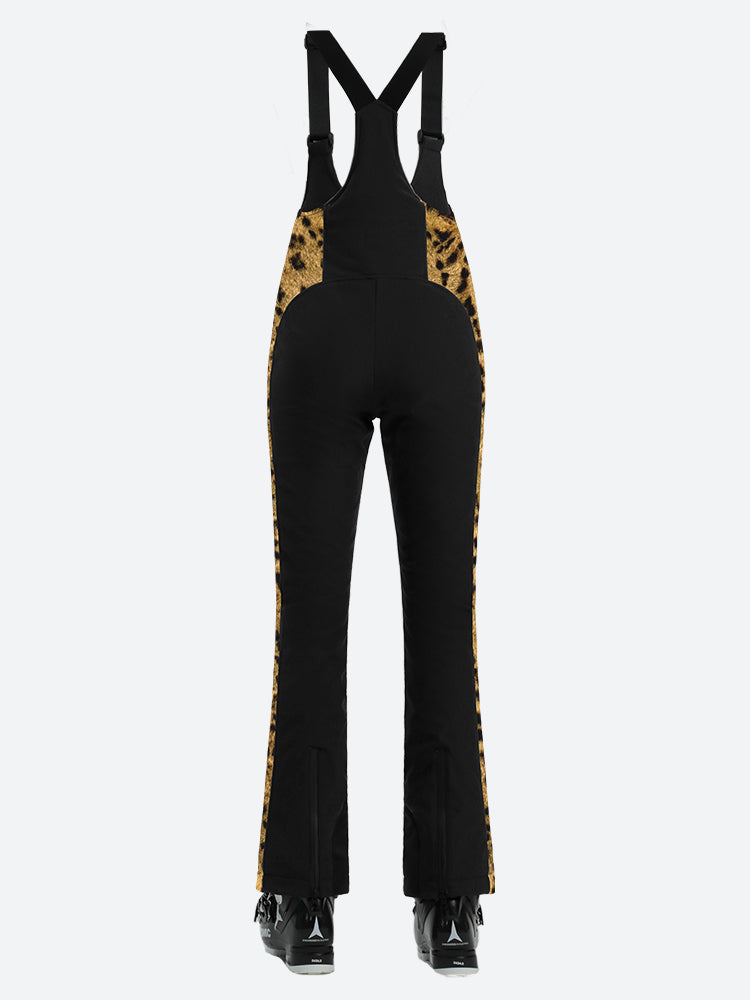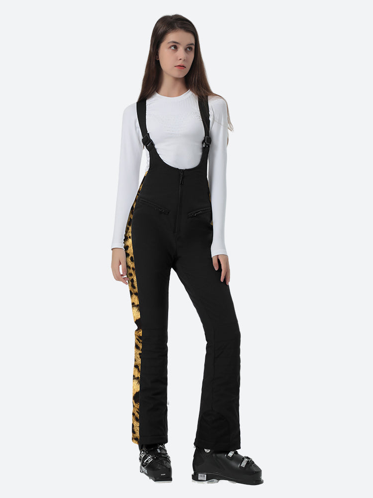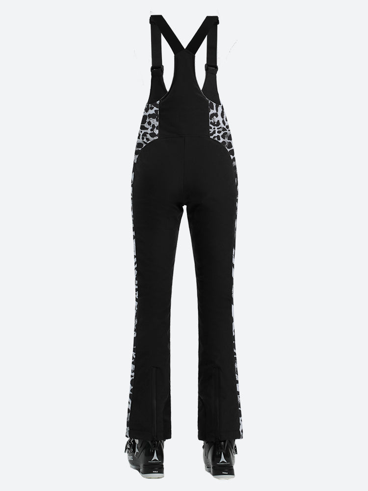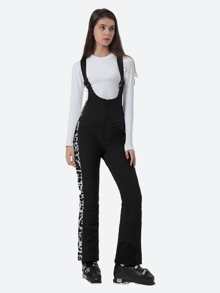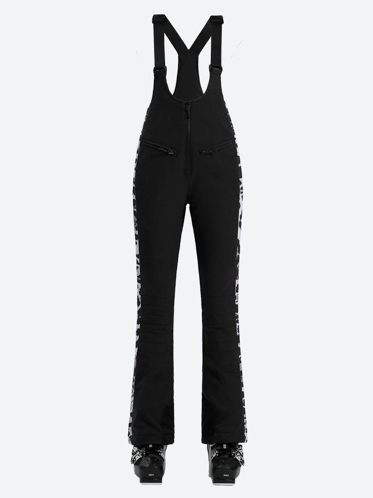 Women's Black & Red Slim-Fit Snow Bibs Articulated Knees Ski Bibs - Gsou Snow