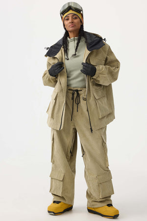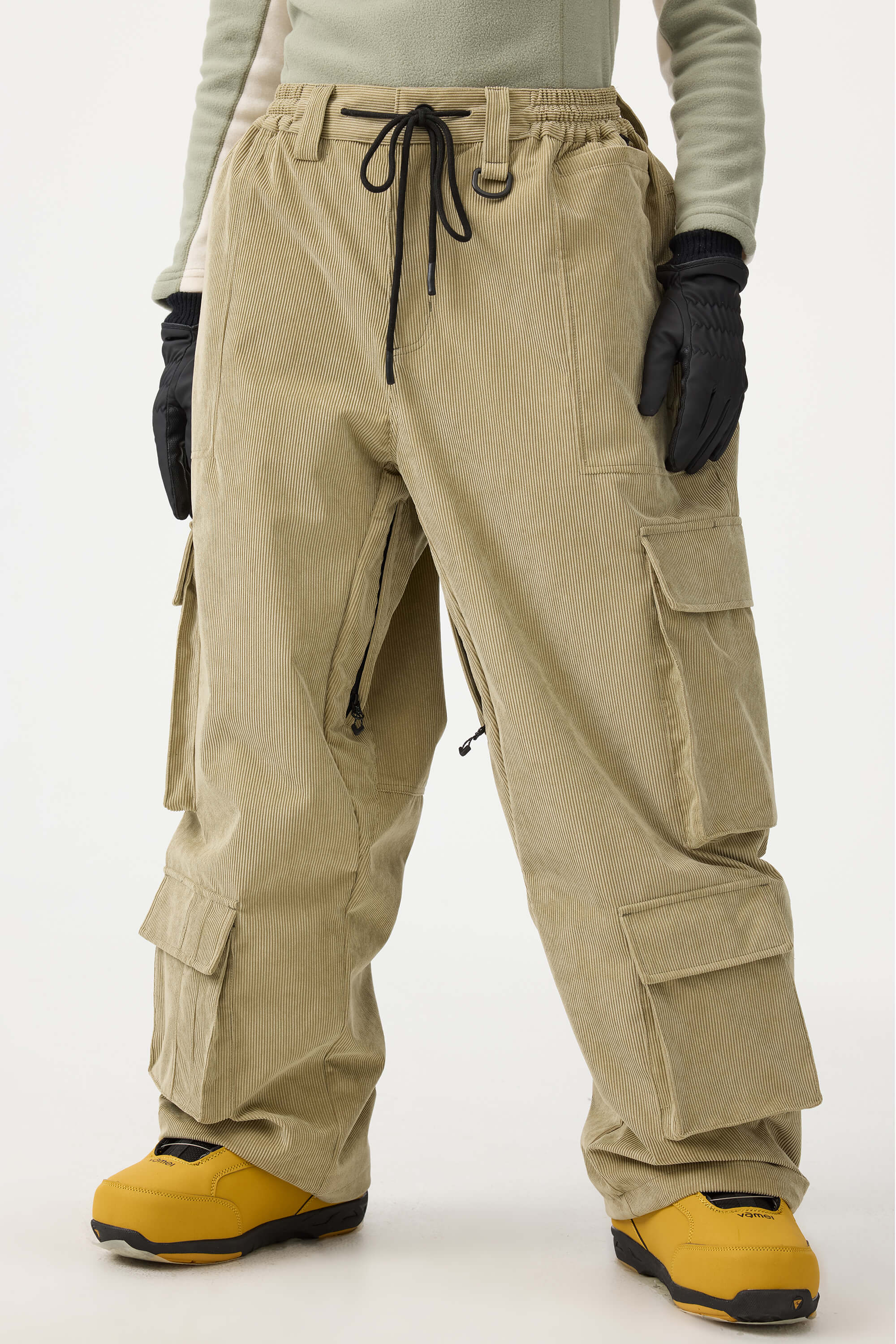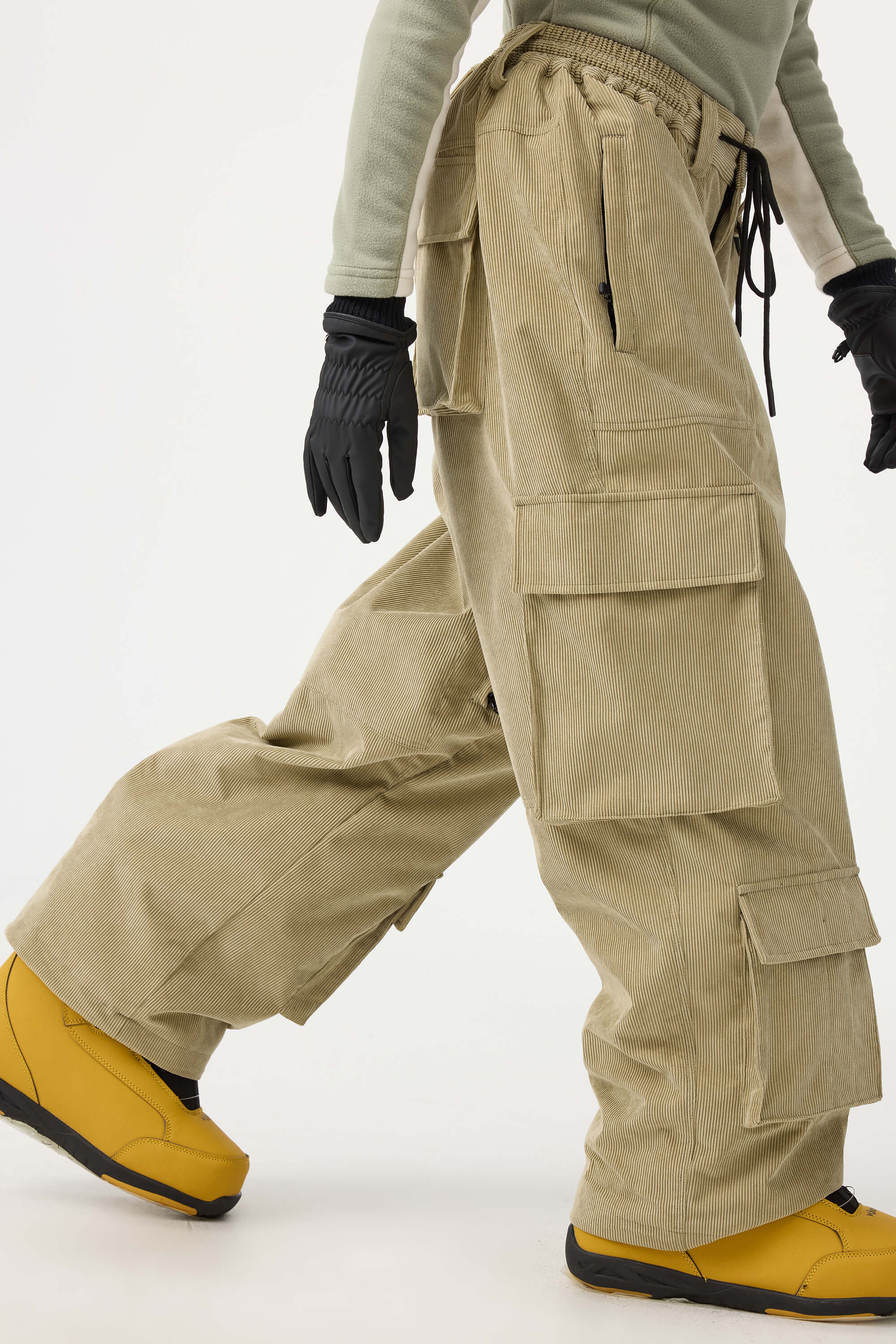 Dámské burgundské baggy lyžařské kalhoty s více kapsami z komfortní kordurové tkaniny - Gsou Snow