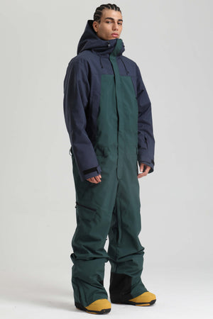 Pánský černý a zelený zateplený monochromatický ski overall s velkým střihem - Gsou Snow