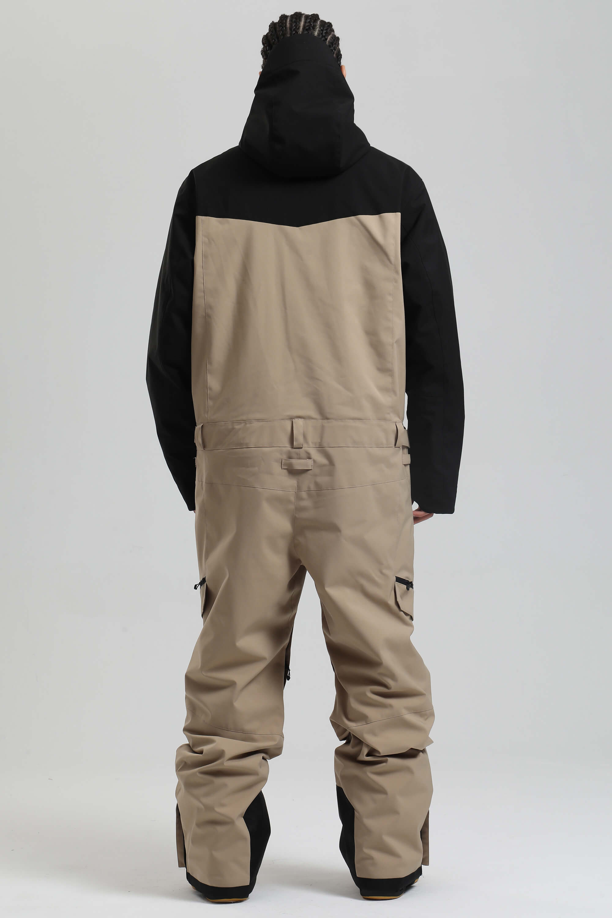 Pánský černý a khaki zateplený monochromatický ski overall s volným střihem - Gsou Snow