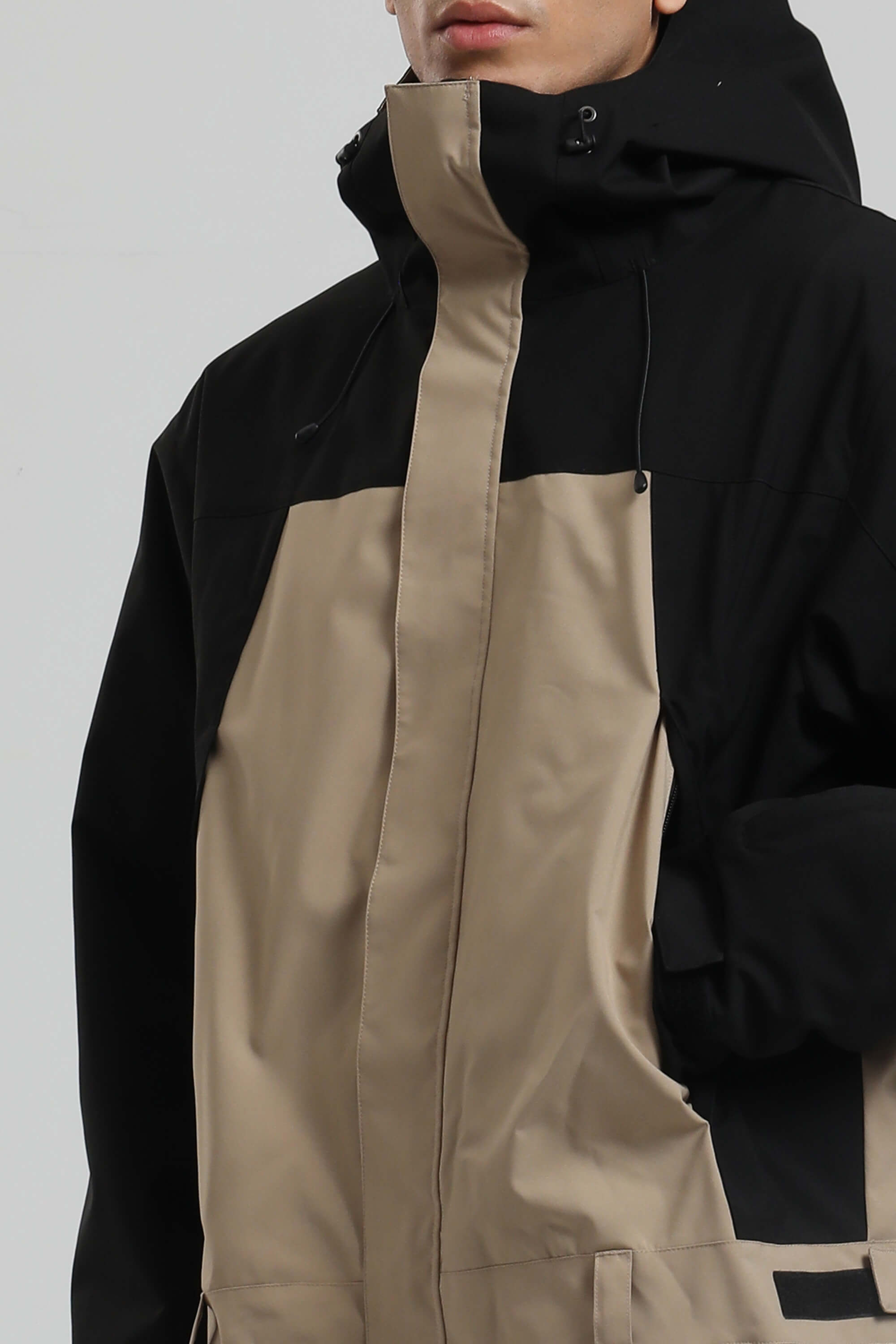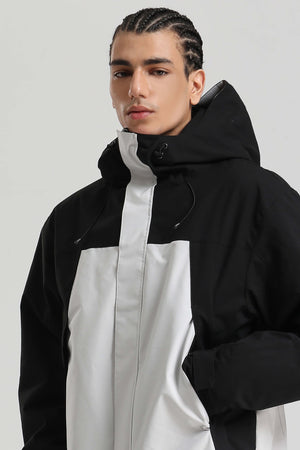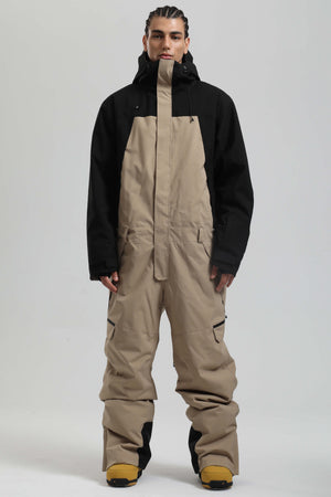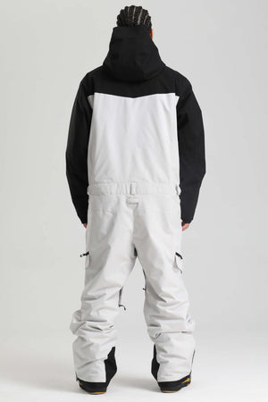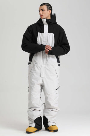 Pánský černý a bílý zateplený monochromatický ski overall s velkým střihem - Gsou Snow