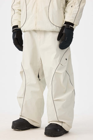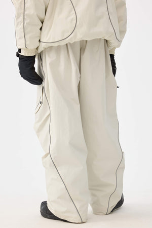 Pánské retro sněhové kalhoty Off White s reflexními detaily a volným střihem - Gsou Snow