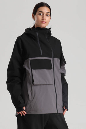 Dámská černá a šedá sněhová bunda s asymetrickým zipem, voděodolná - Gsou Snow