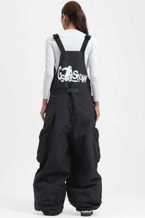 Dámské černé sněhové overaly ve stylu workwear s vestavěným páskem, super volný střih - Gsou Snow