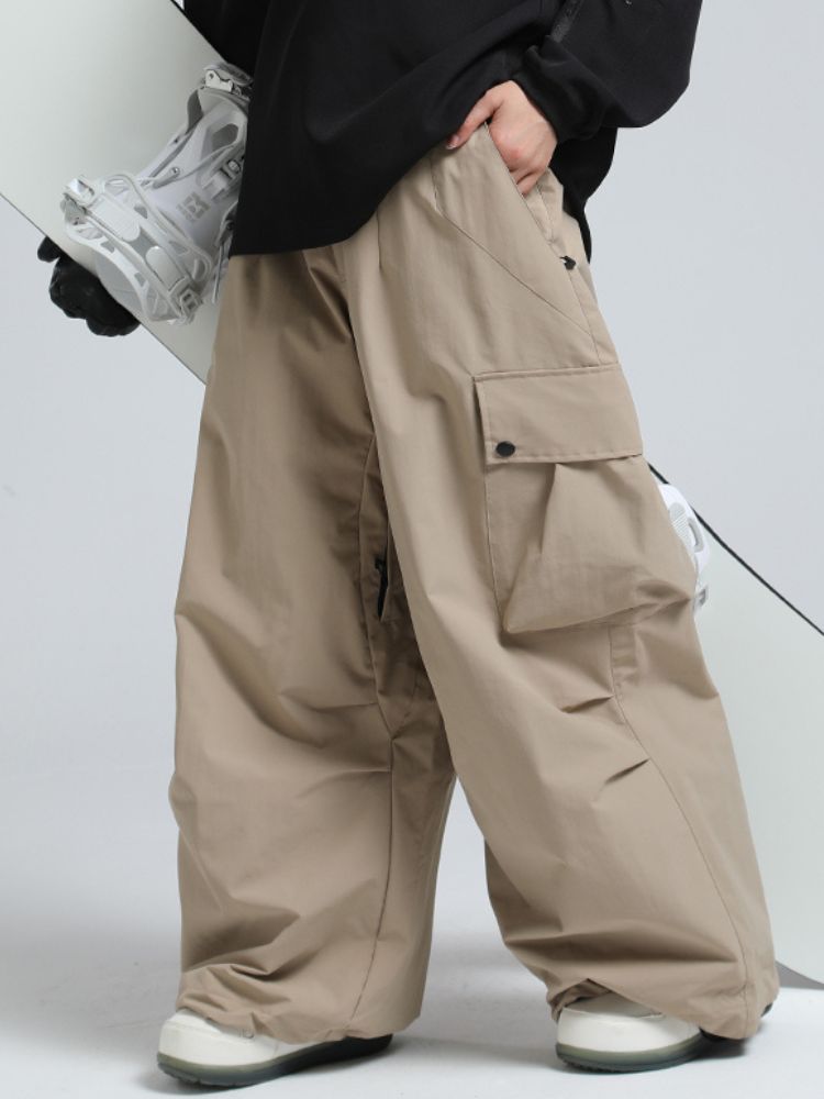 Gsou Snow Baggy Cargo snowboardové kalhoty nabízejí všestranné, volné nošení ideální pro vrstvení ve všech podmínkách, spojující minimalistický styl se základními funkcemi pro zajištění tepla a sucha na svahu.