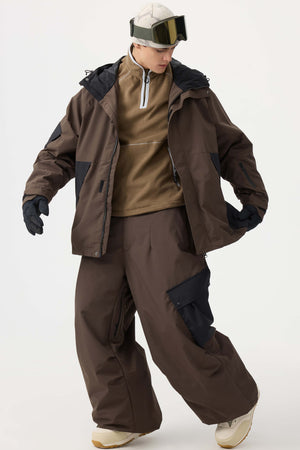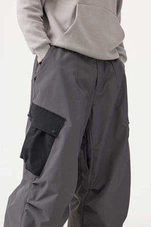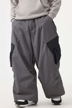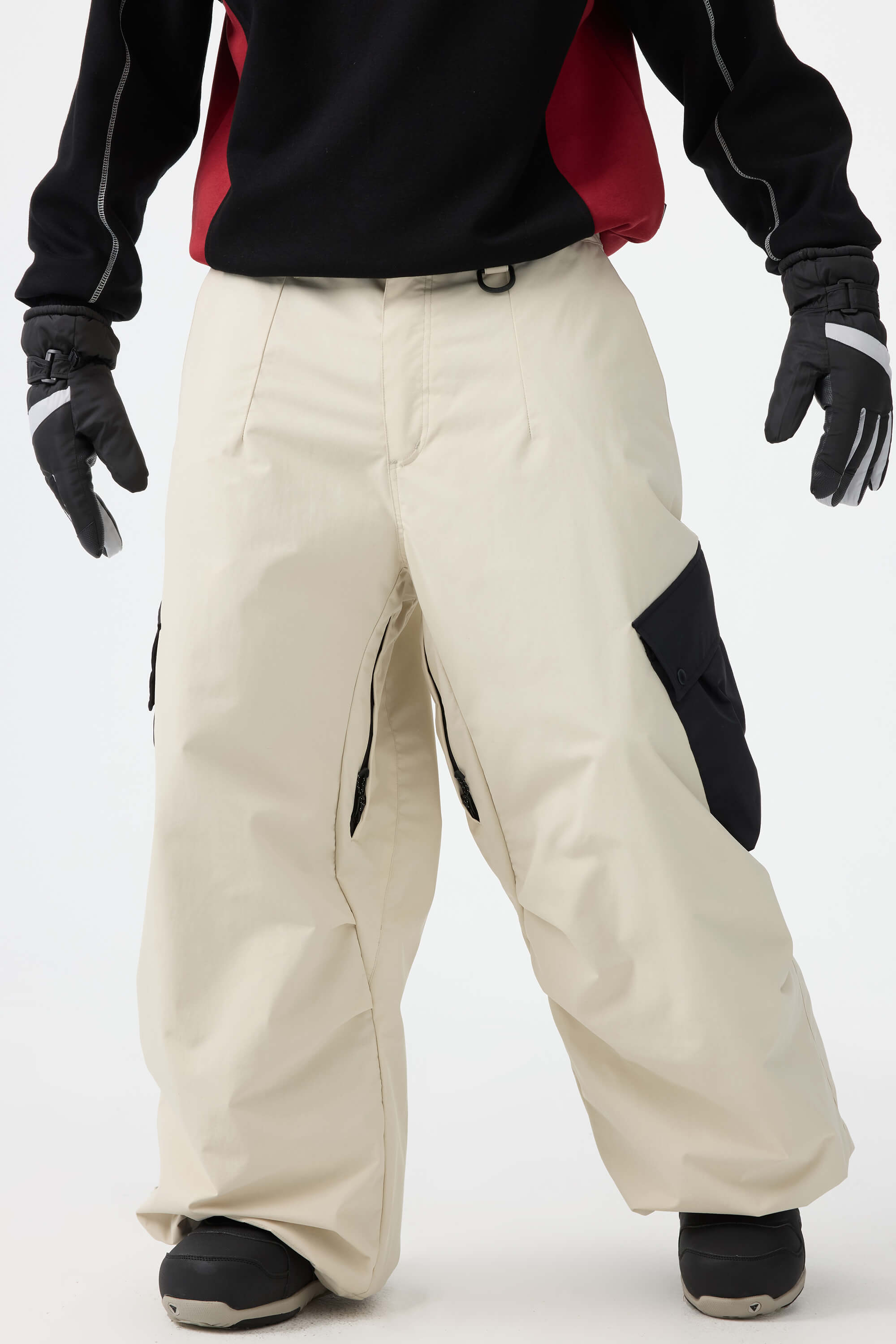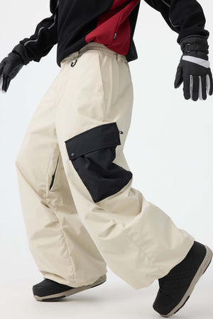 Schwarze, weite Skihose für Herren mit Farbblock-Design und Cargotaschen – Gsou Snow