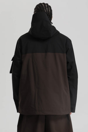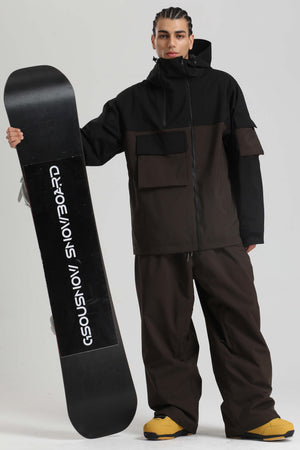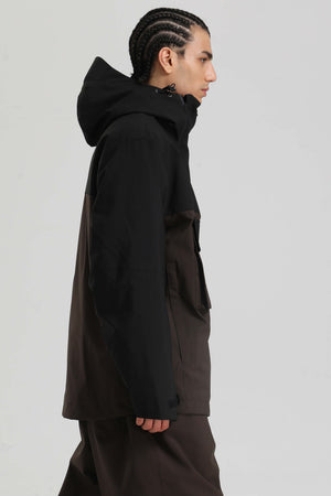 Herren-Skijacke in Schwarz und Braun mit asymmetrischem Reißverschluss, praktischen Taschen, wasserdicht - Gsou Snow