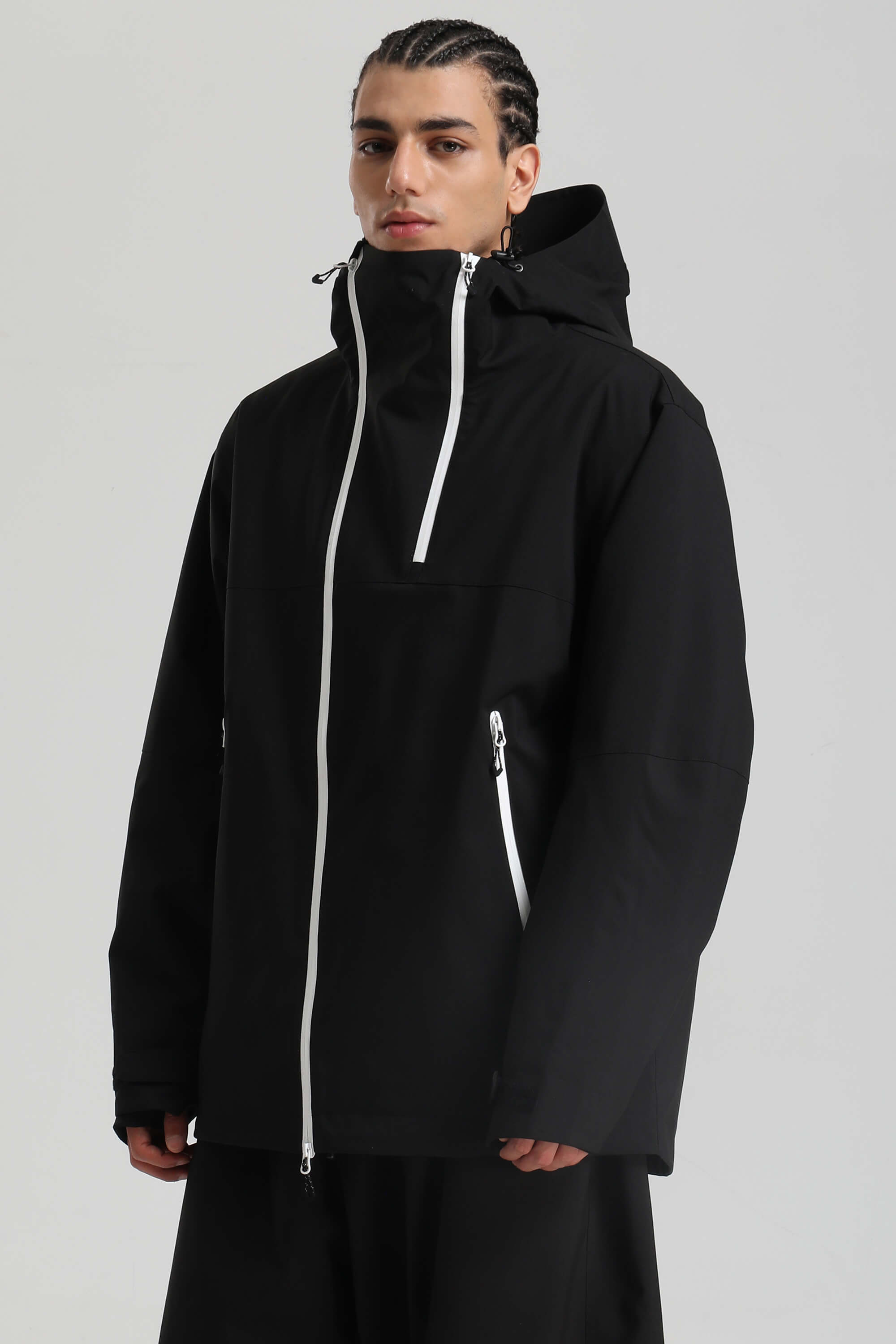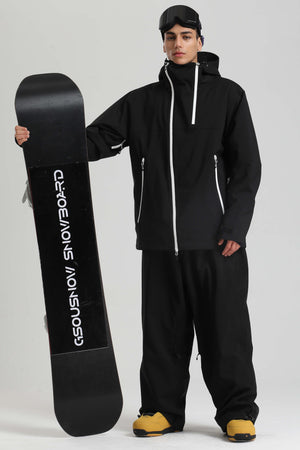 Schwarze Herren-Schneejacke mit asymmetrischem Reißverschluss und Gesichtsbelüftung, wasserdicht und isoliert - Gsou Snow