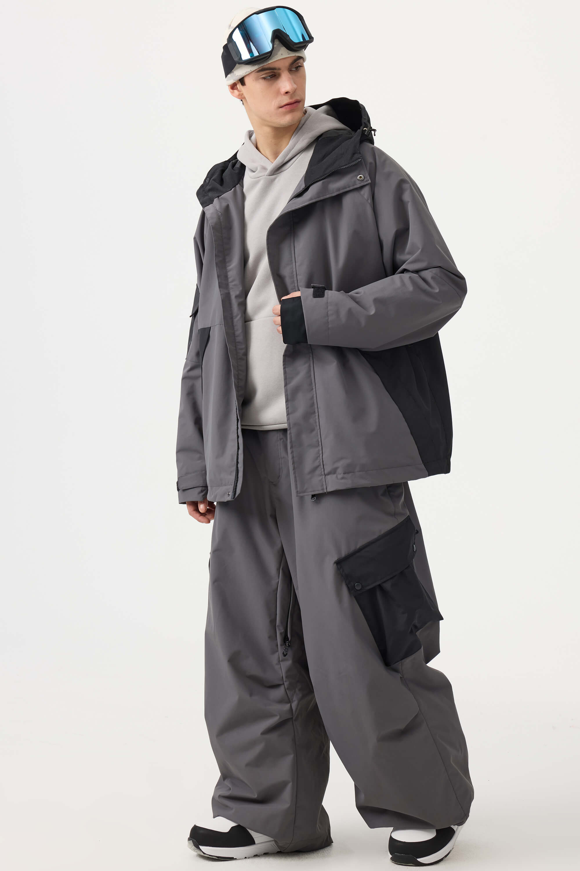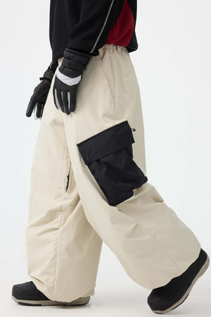 Herren-Skihose mit Cargotaschen, weit geschnitten, farblich abgesetzt und in Kaffeebraun - Gsou Snow