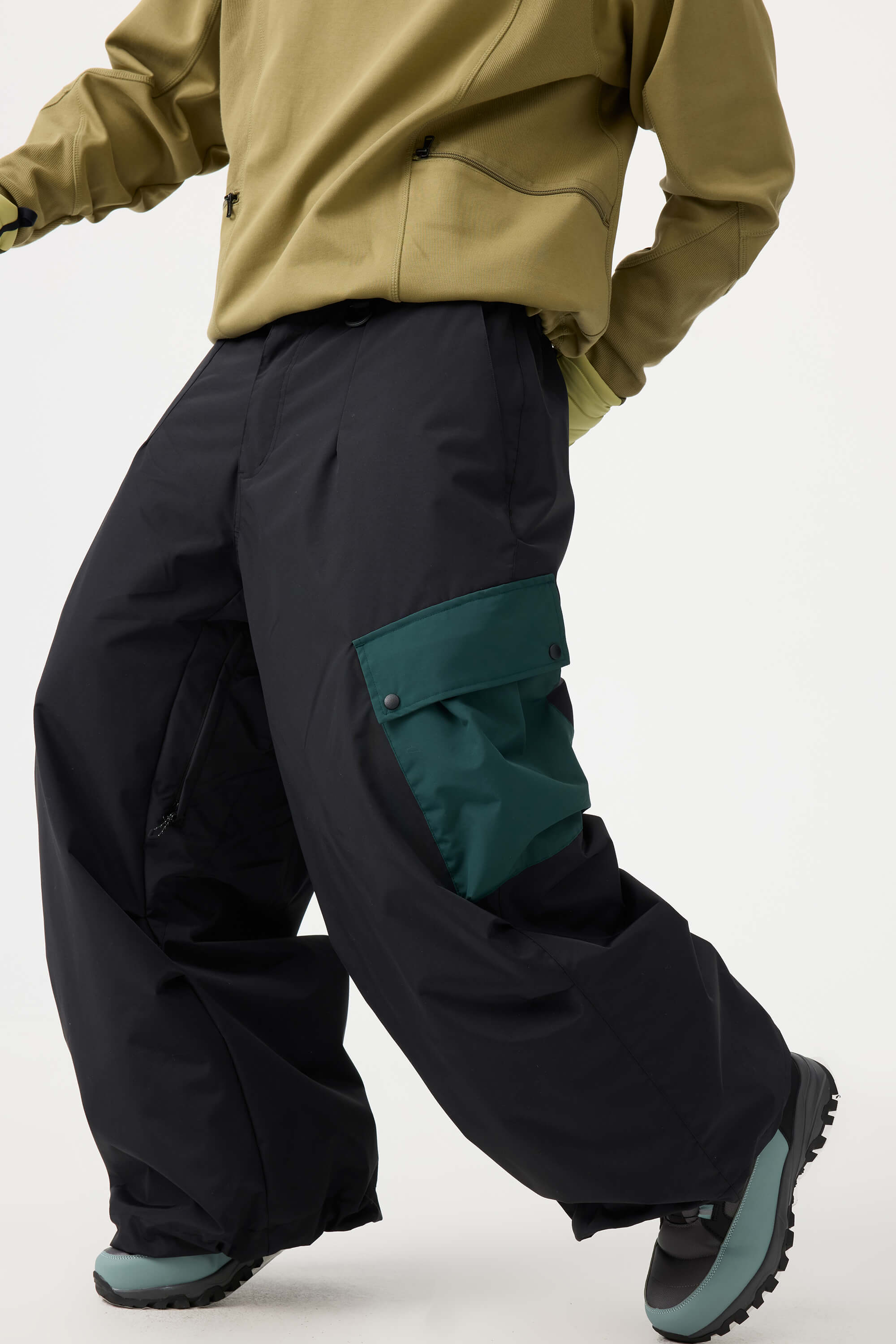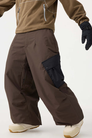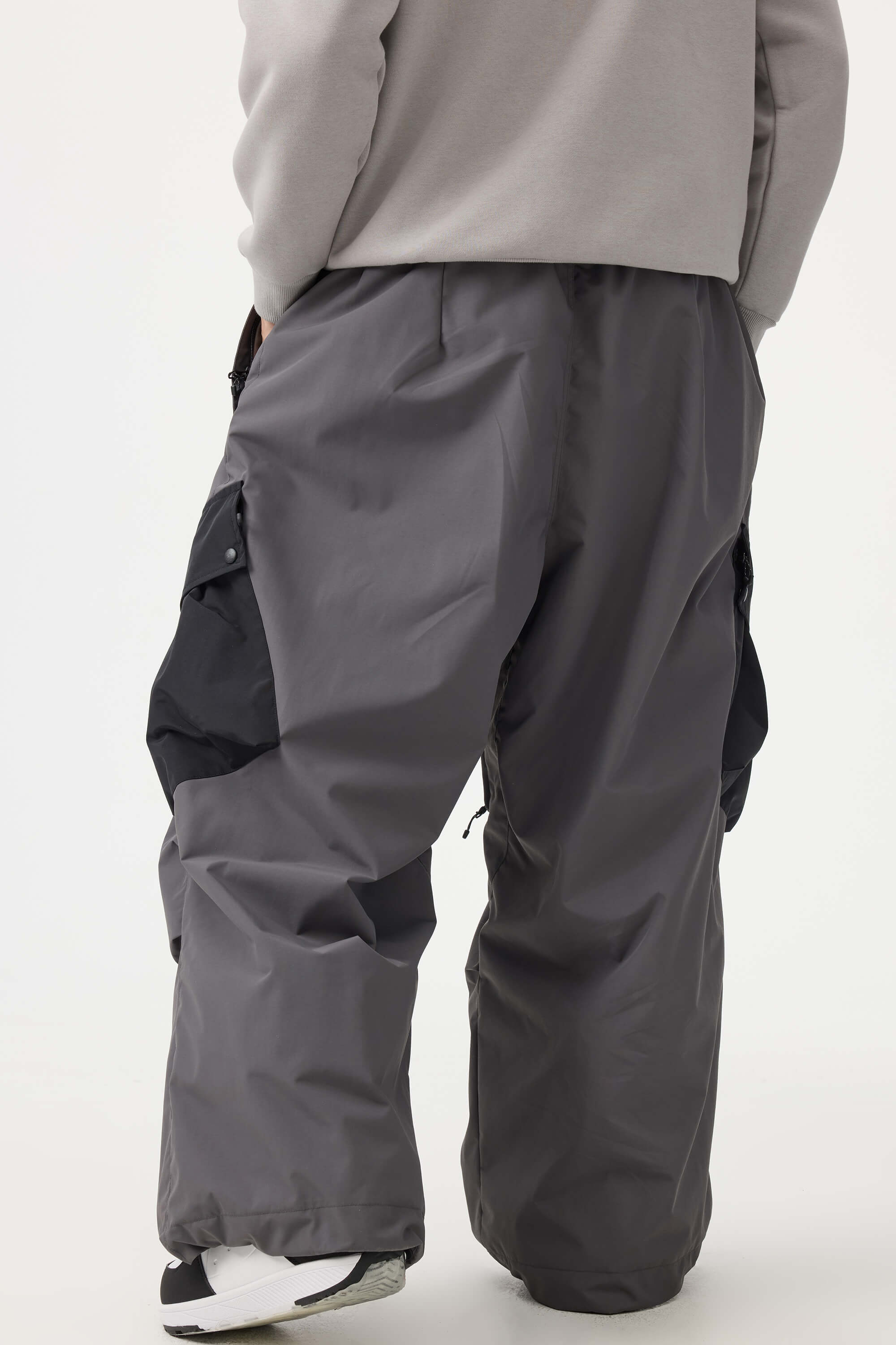 Herren-Skihose in Dunkelgrau mit weitem Schnitt, Farbblock-Design und Cargotaschen - Gsou Snow