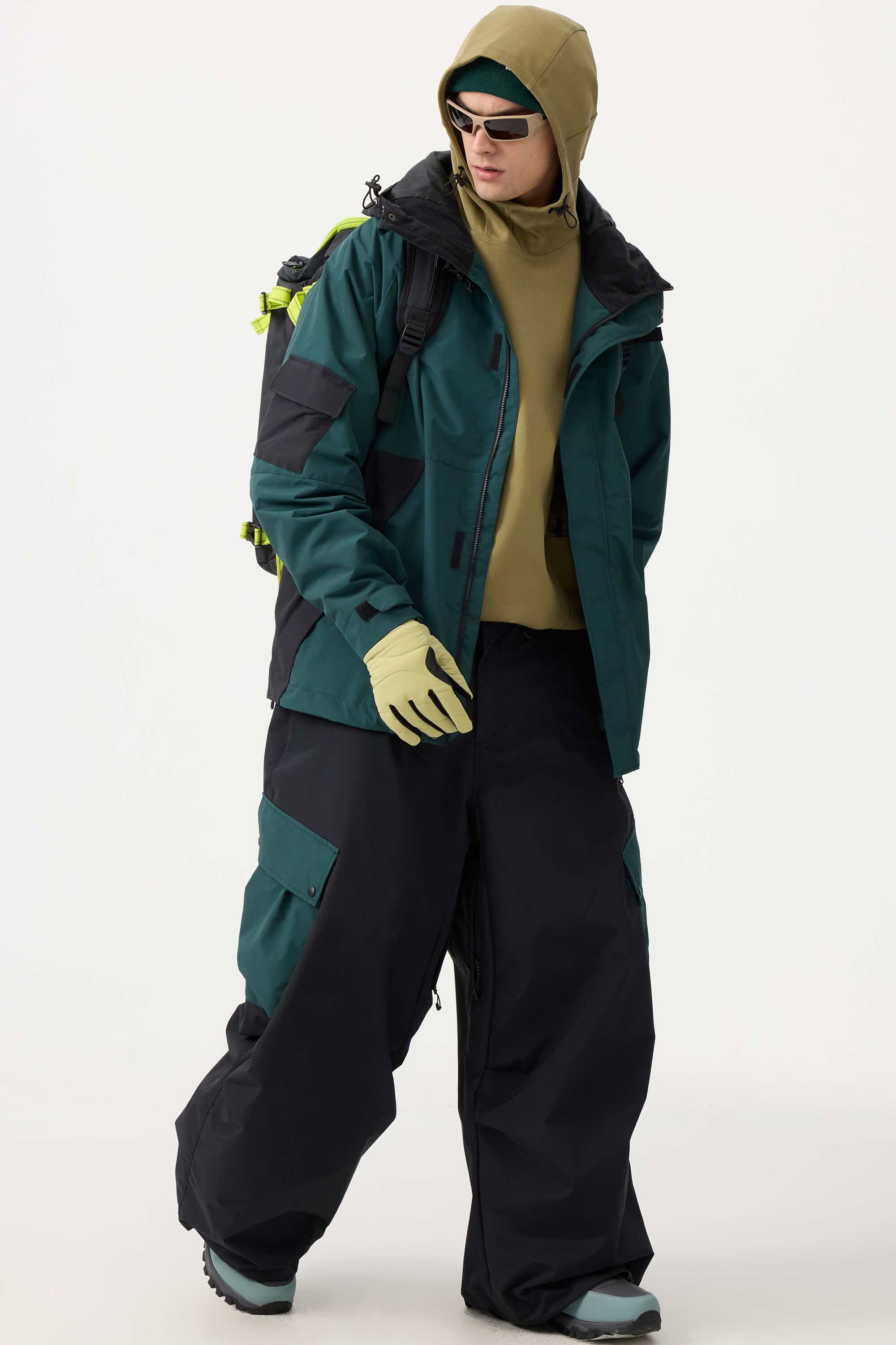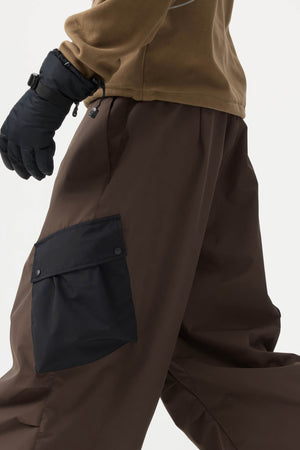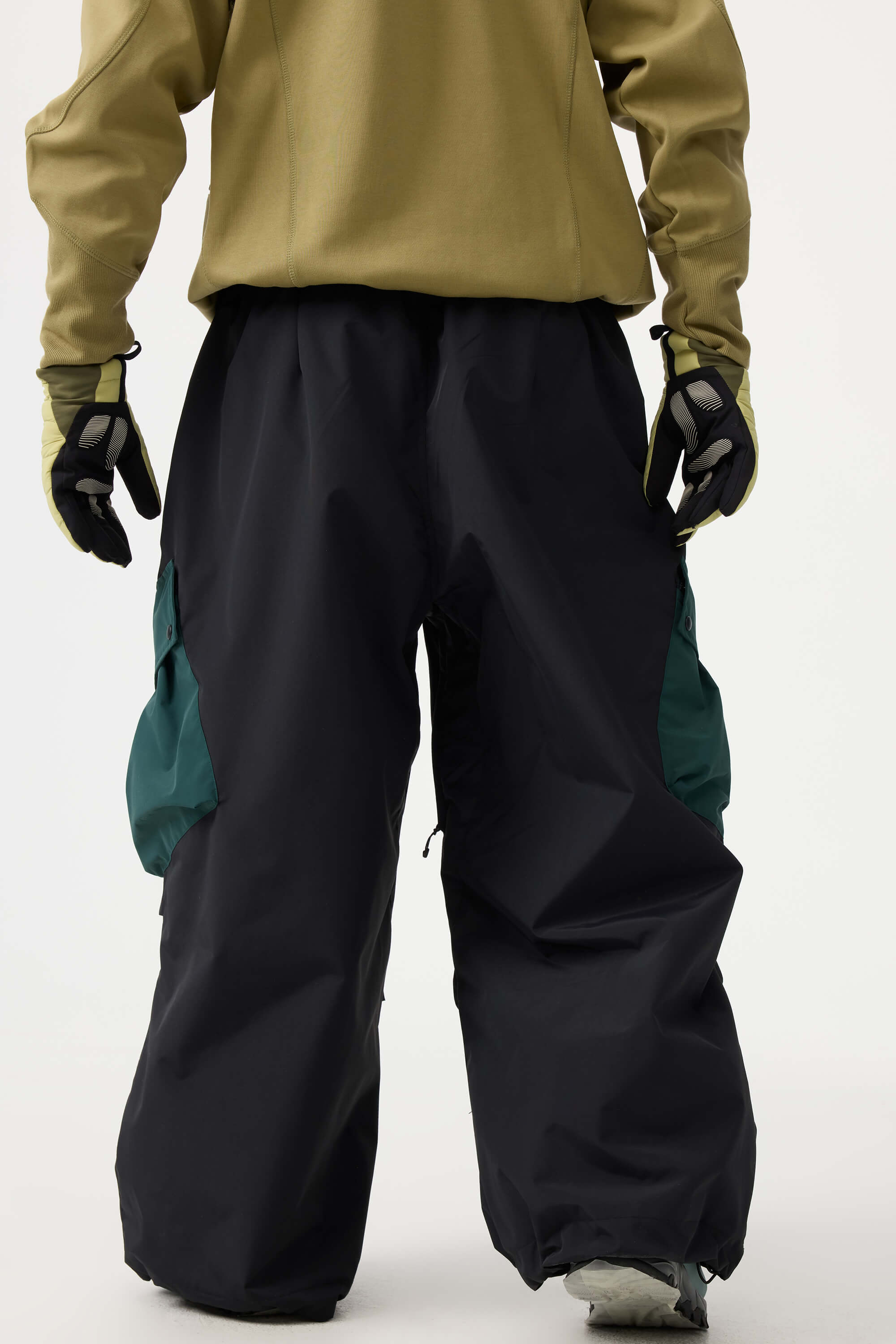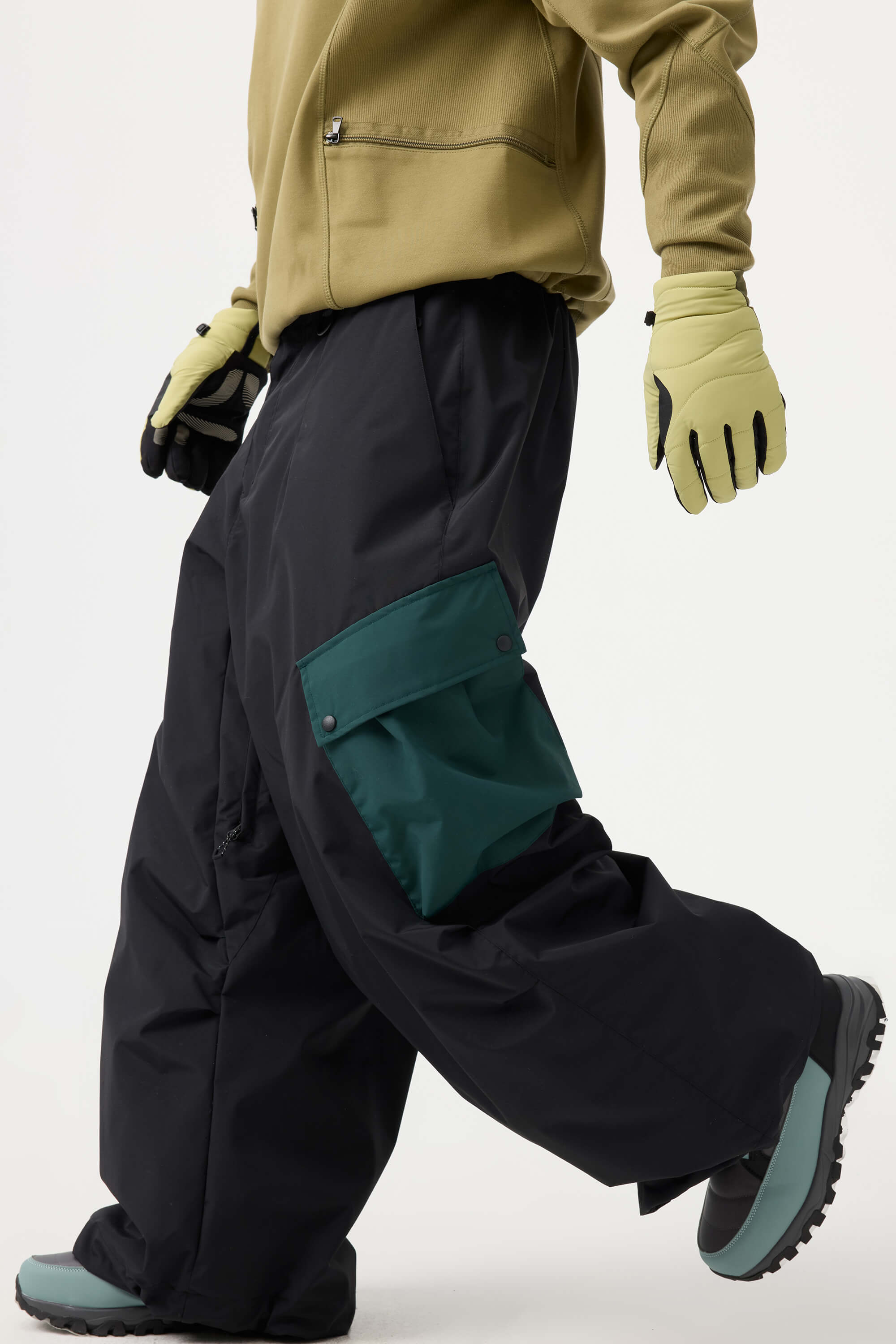 Herren-Skihose in Dunkelgrau mit weitem Schnitt, Farbblock-Design und Cargotaschen - Gsou Snow