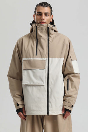 Herren-Schneejacke Khaki & Weiß mit asymmetrischem Reißverschluss, praktischen Taschen, wasserdicht - Gsou Snow