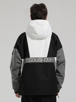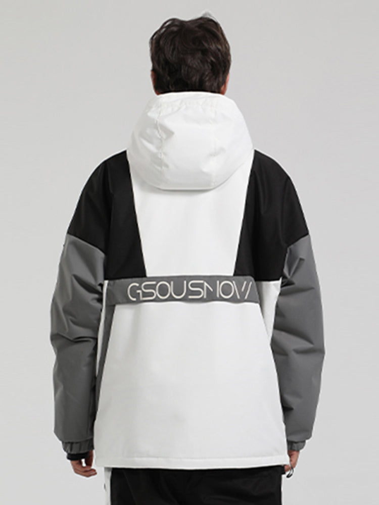 Schwarz-weiße, wasserdichte Snowboard-Anoraks mit Kängurutasche für Herren – Gsou Snow