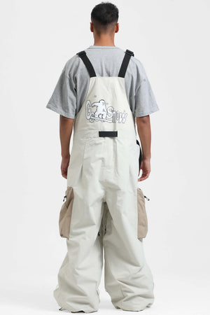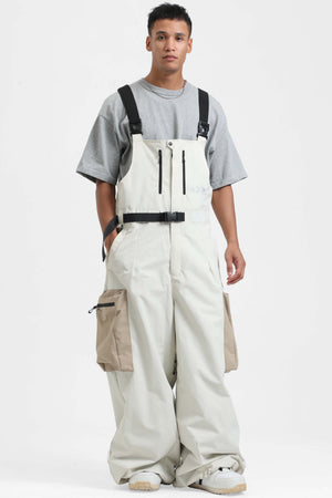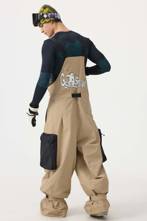 Rote Ski-Latzhose im Arbeitsstil für Herren mit integriertem Gürtel, extra weit geschnitten - Gsou Snow