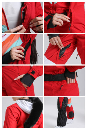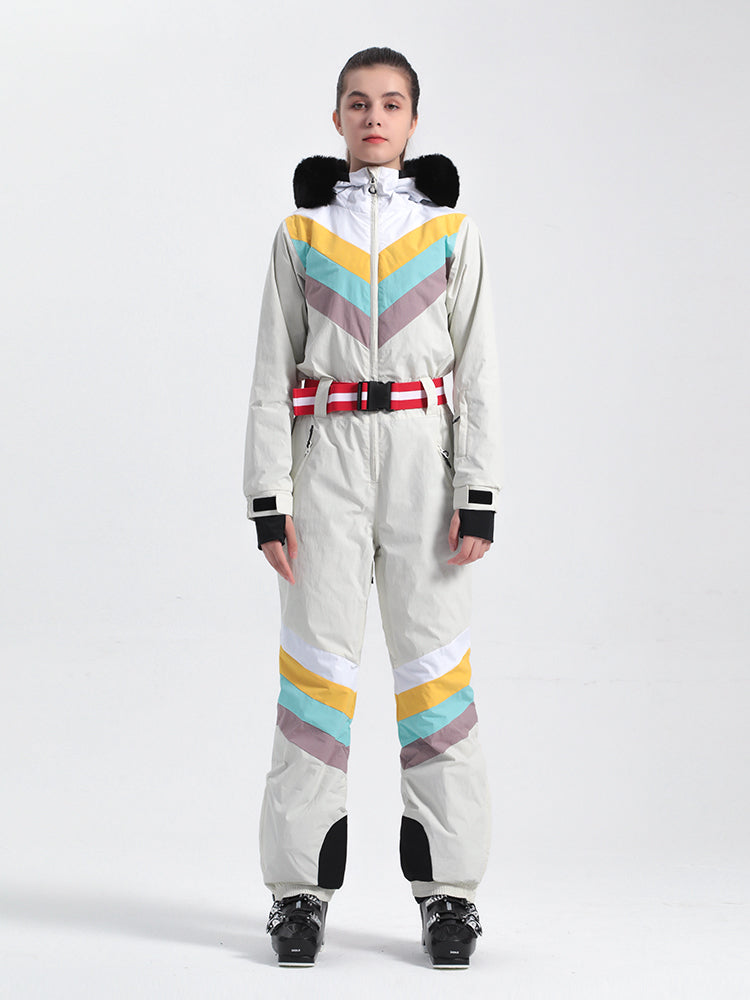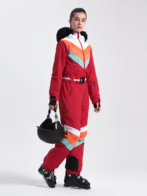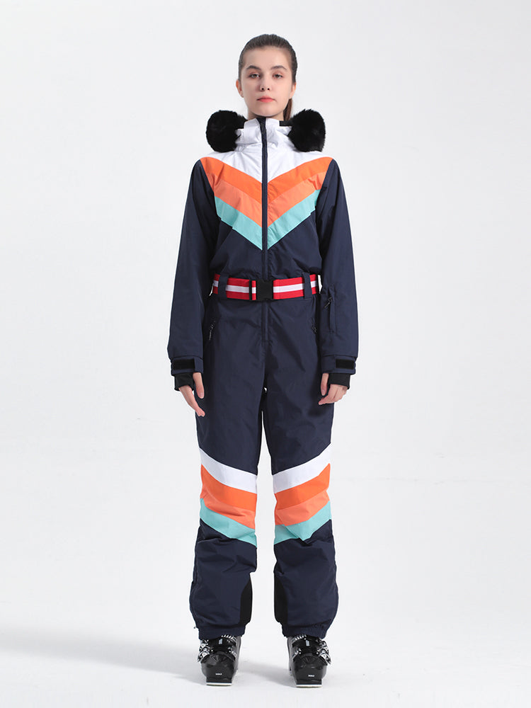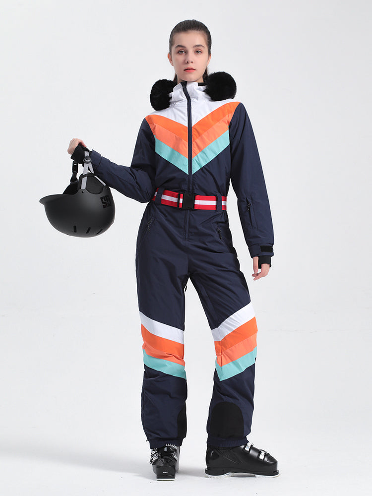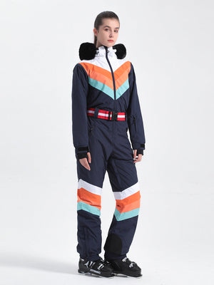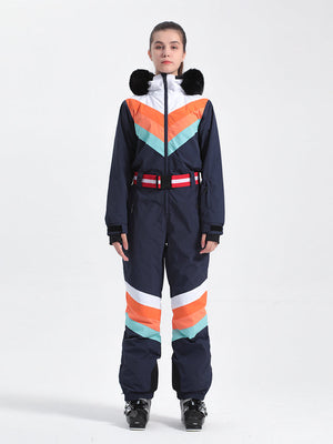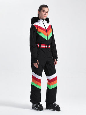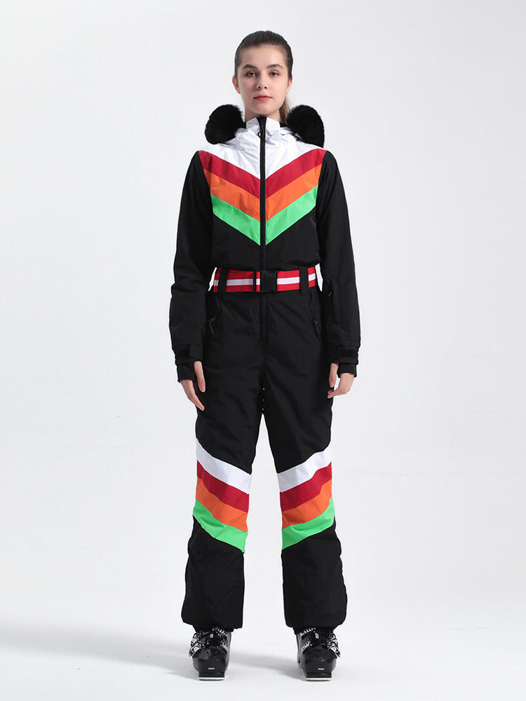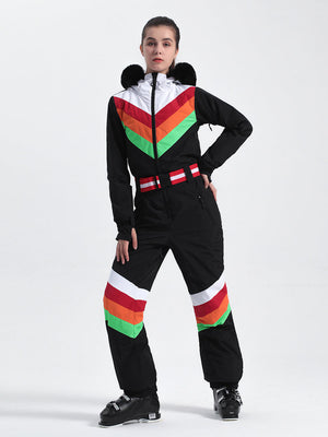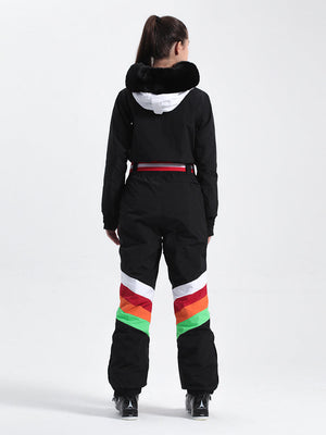 Schwarzer, schneeabweisender, belüfteter Damen-Schneeanzug, einteiliger Skianzug - Gsou Snow