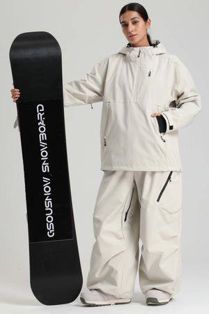 Damen-Schneeanorak in Off-White mit seitlichem Reißverschluss und Belüftungsöffnungen, vollständig versiegelt und isoliert - Gsou Snow