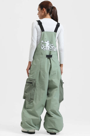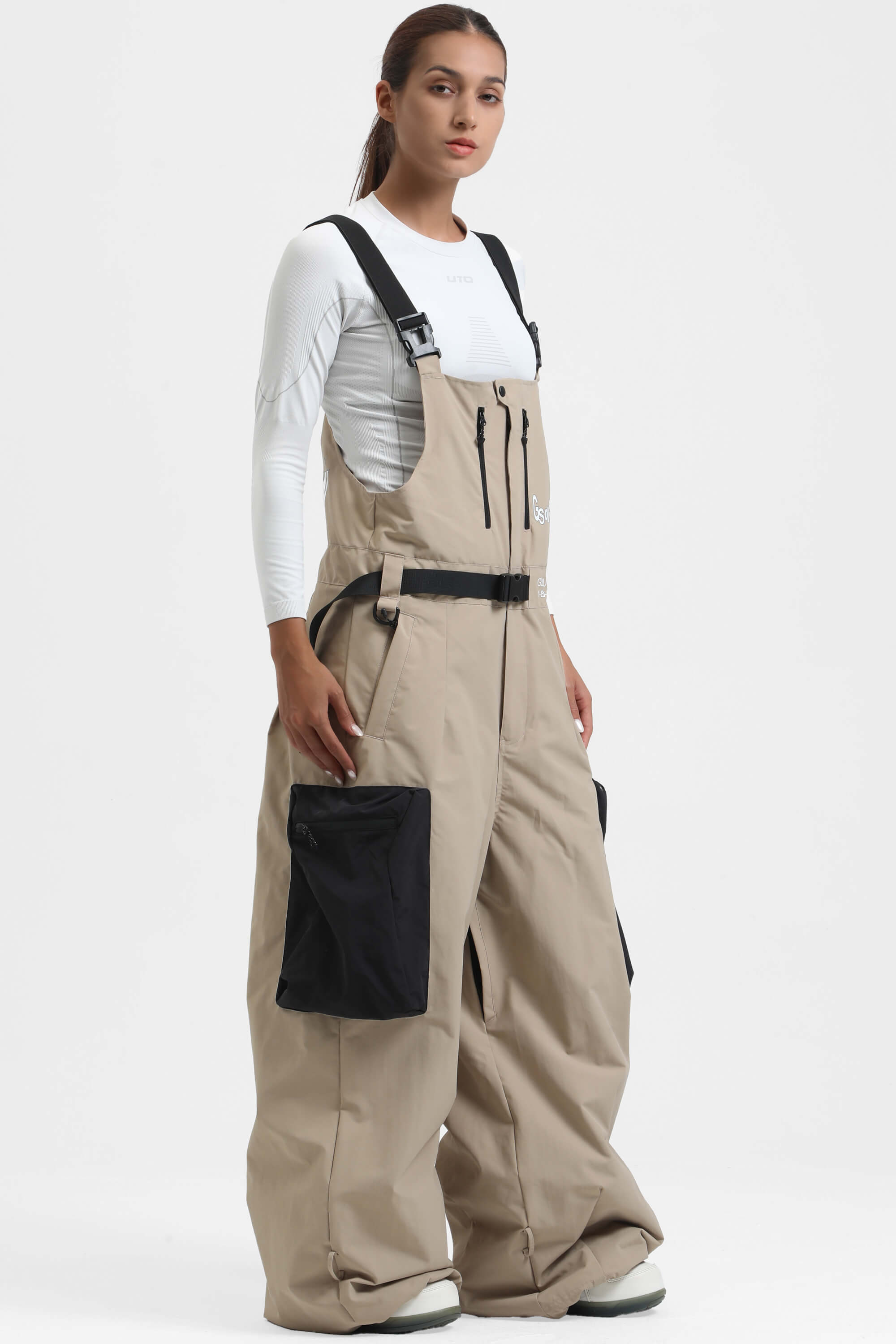 Gsou Snow Damen-Skihose im Workwear-Stil, Off-White, mit integriertem Gürtel, extra weit geschnitten