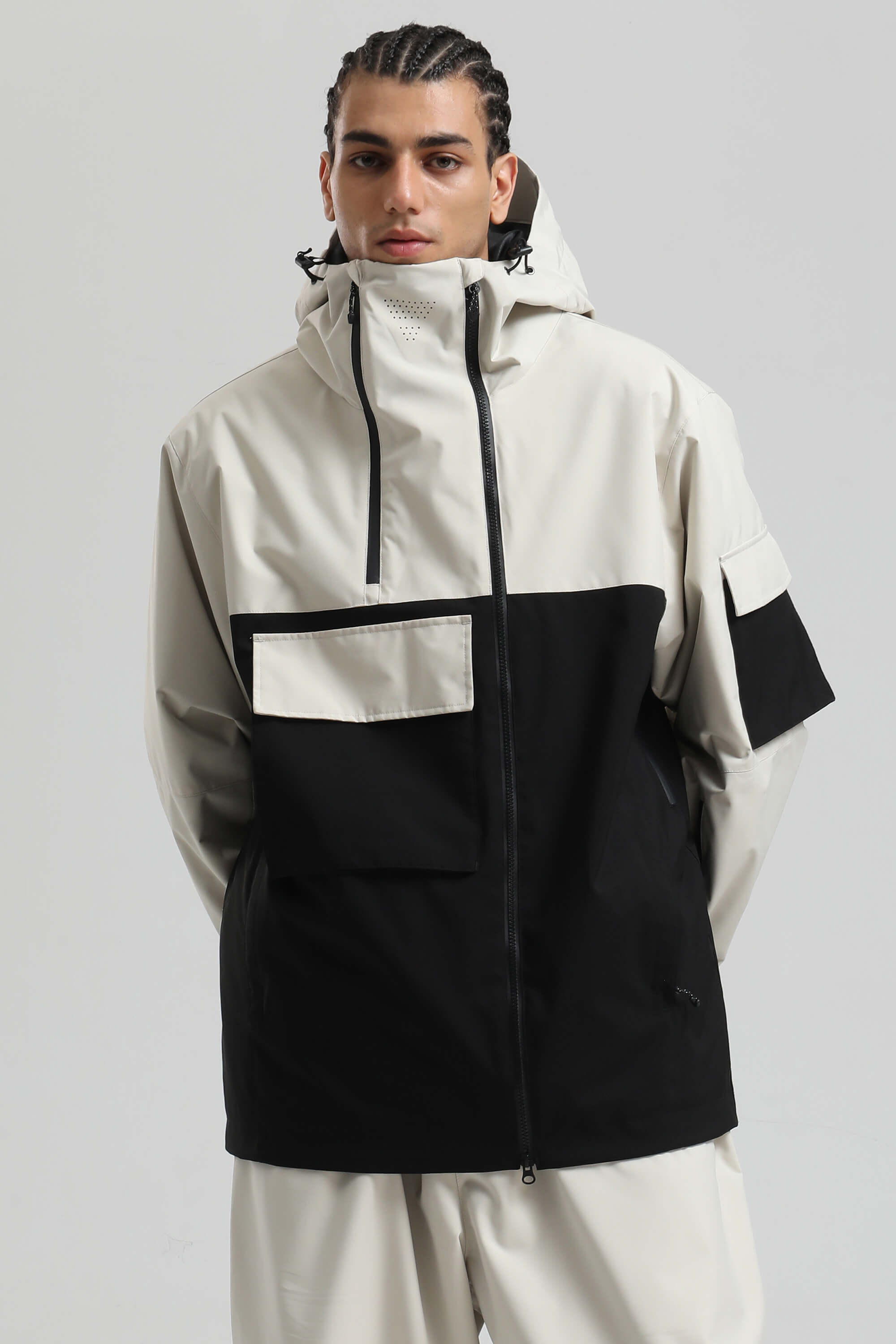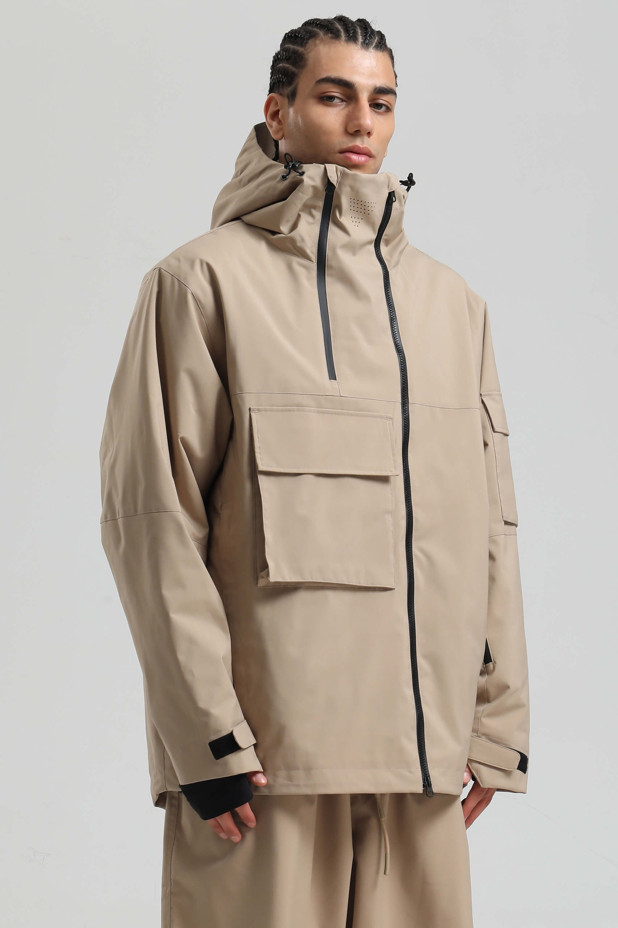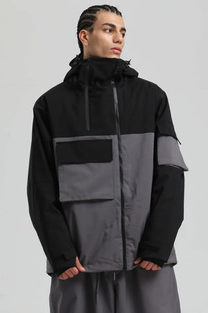 Veste de ski utilitaire kaki pour homme, fermeture éclair asymétrique, poches, imperméable - Gsou Snow