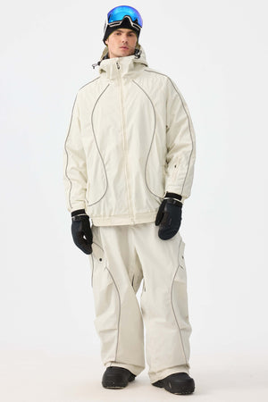 Męskie luźne spodnie narciarskie w stylu retro z odblaskową lamówką, czarne - Gsou Snow