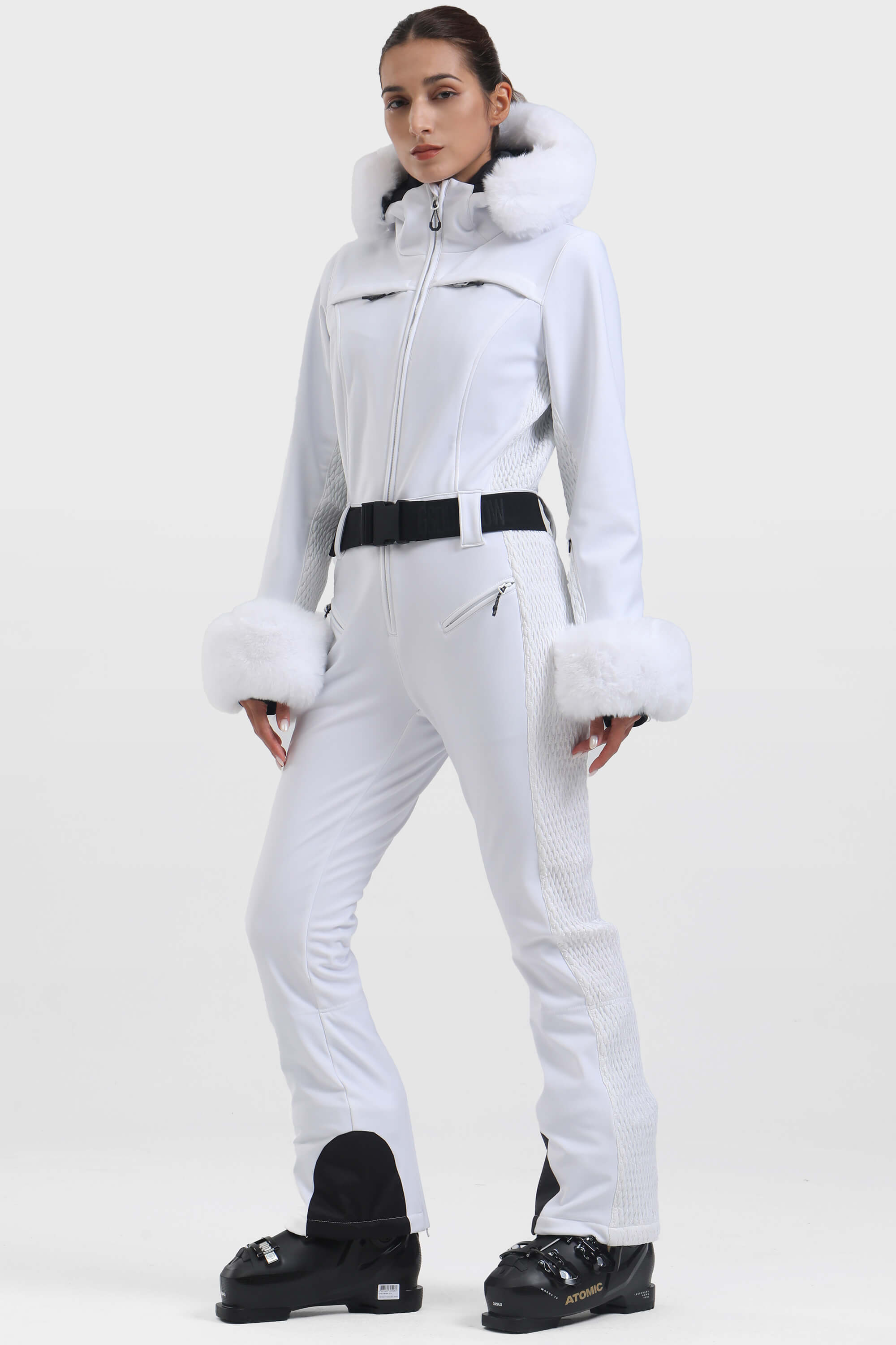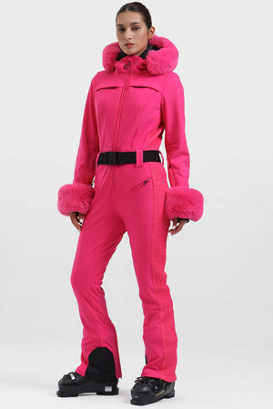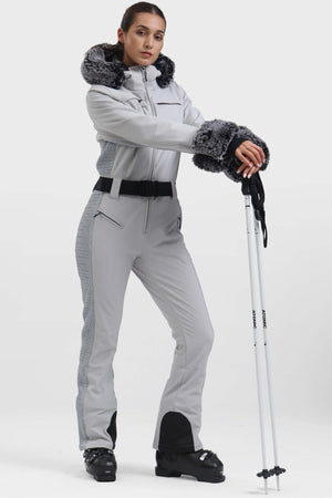 Damski Kombinezon Narciarski/Snowboardowy w Kolorze Khaki ze Sztucznym Futrem - Wodoodporny - Gsou Snow