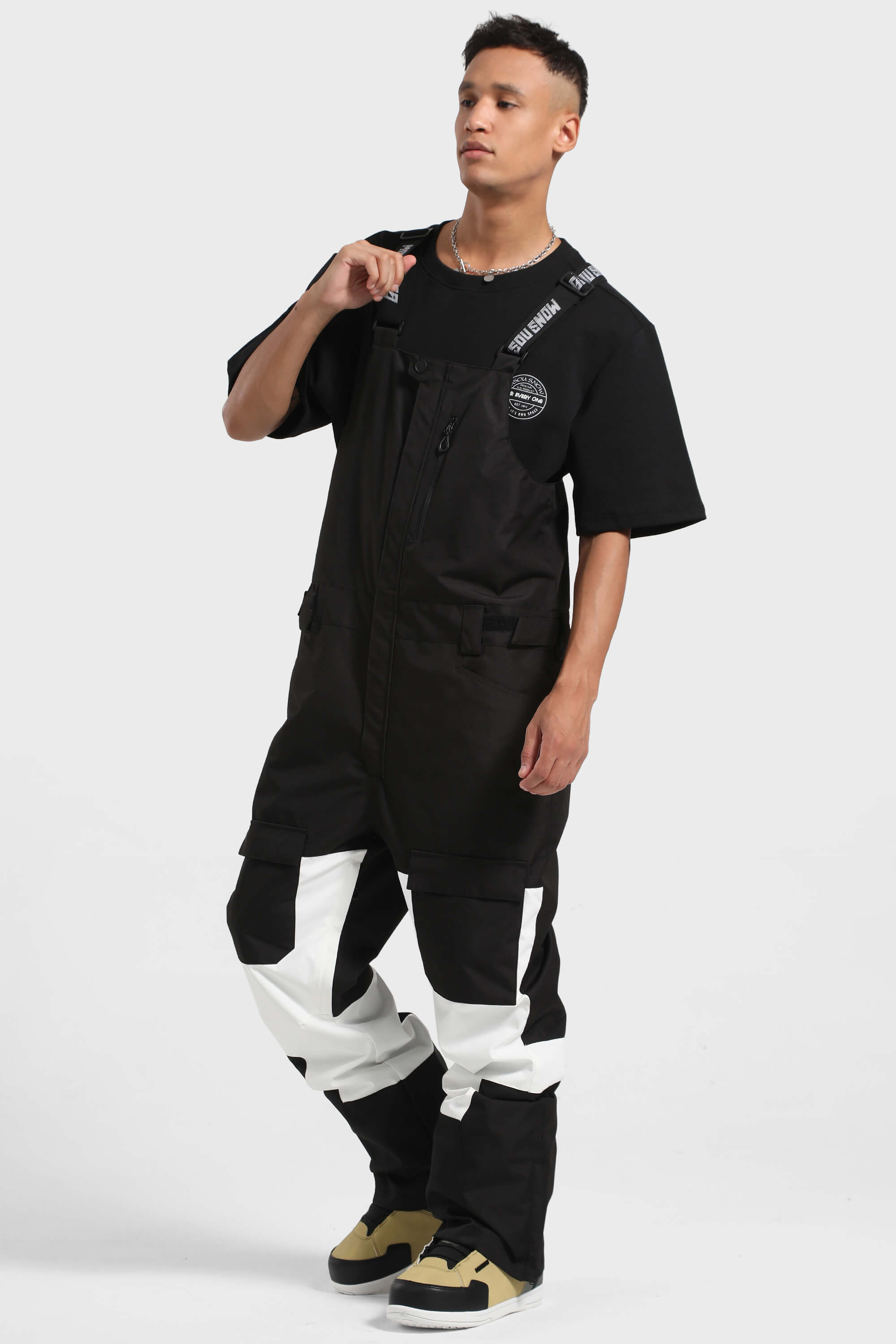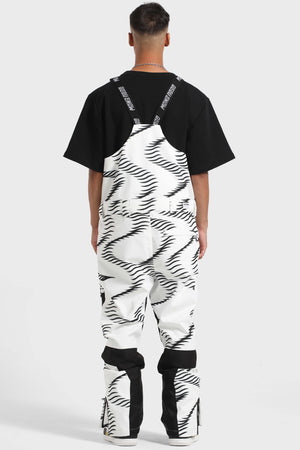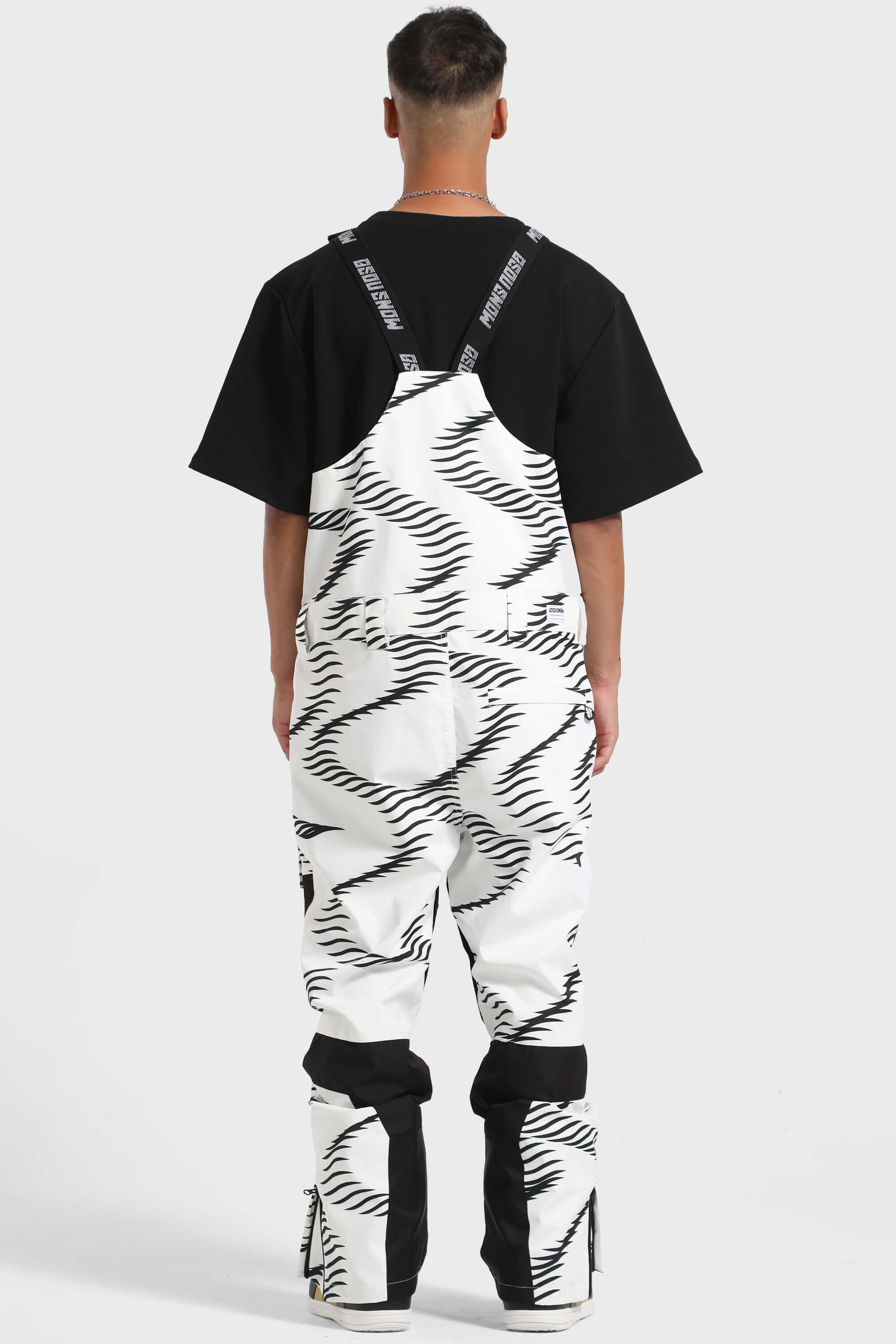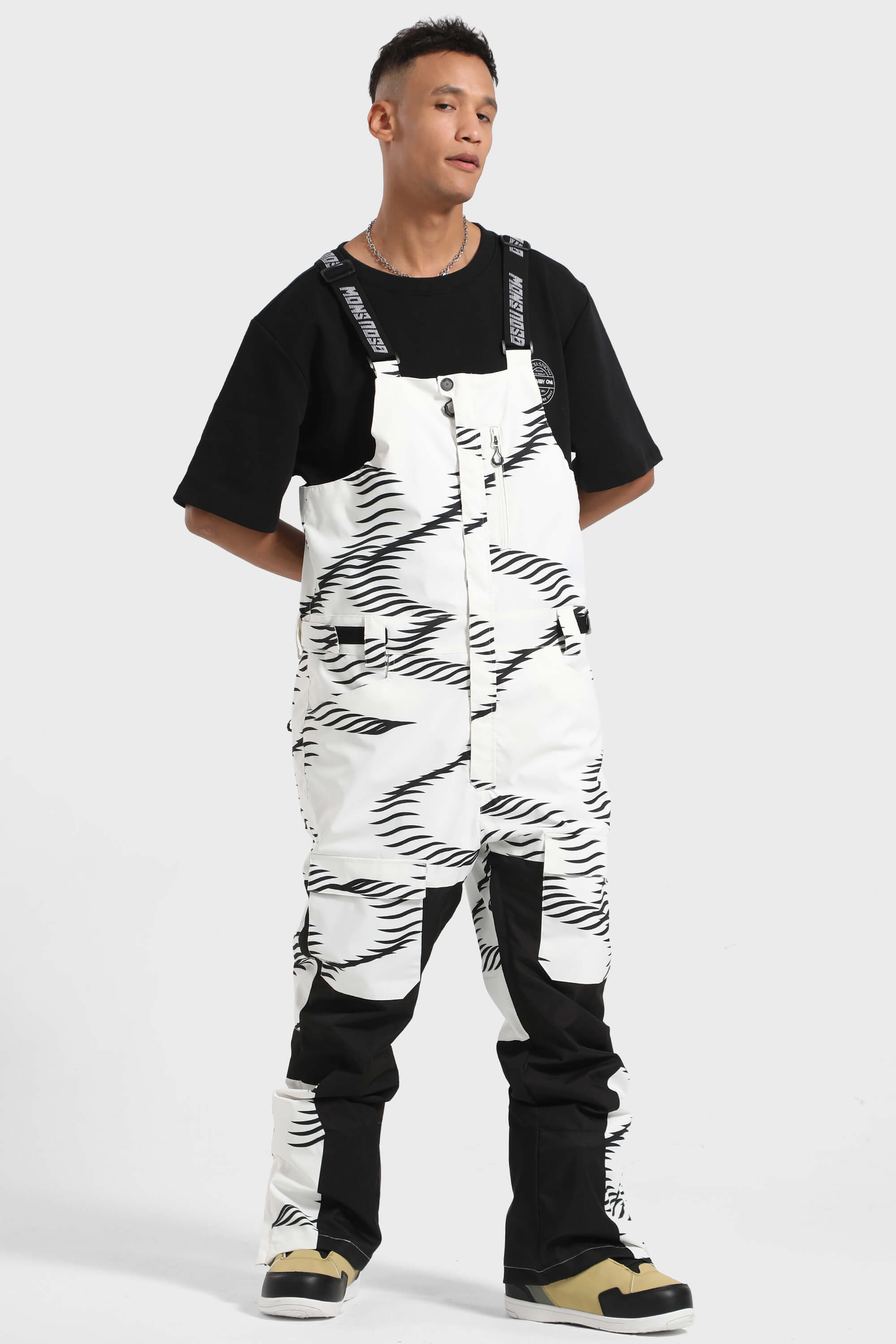 Męskie czarno-białe spodnie narciarskie typu bib z wieloma kieszeniami - Gsou Snow
