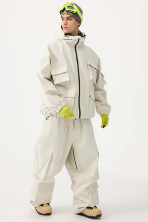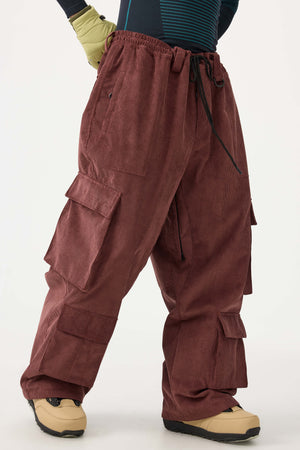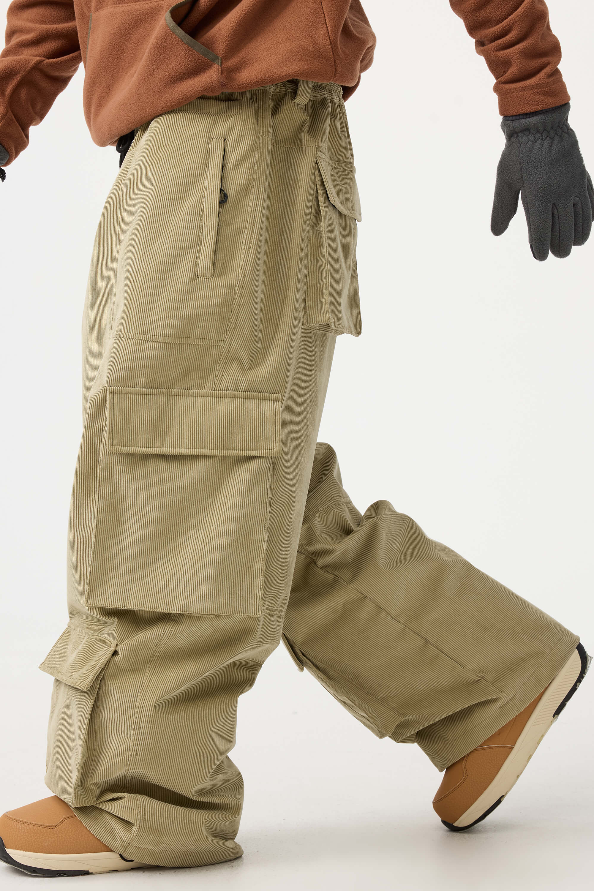 Męskie Spodnie Narciarskie w Kolorze Khaki ze Sztruksu z Wieloma Kieszeniami - Gsou Snow