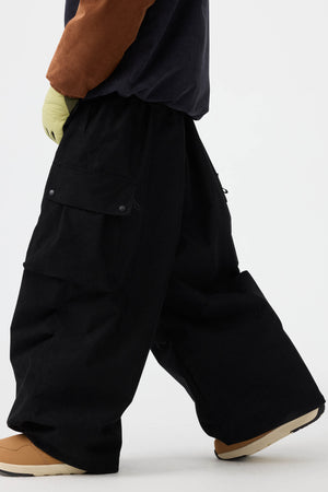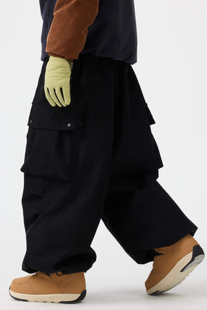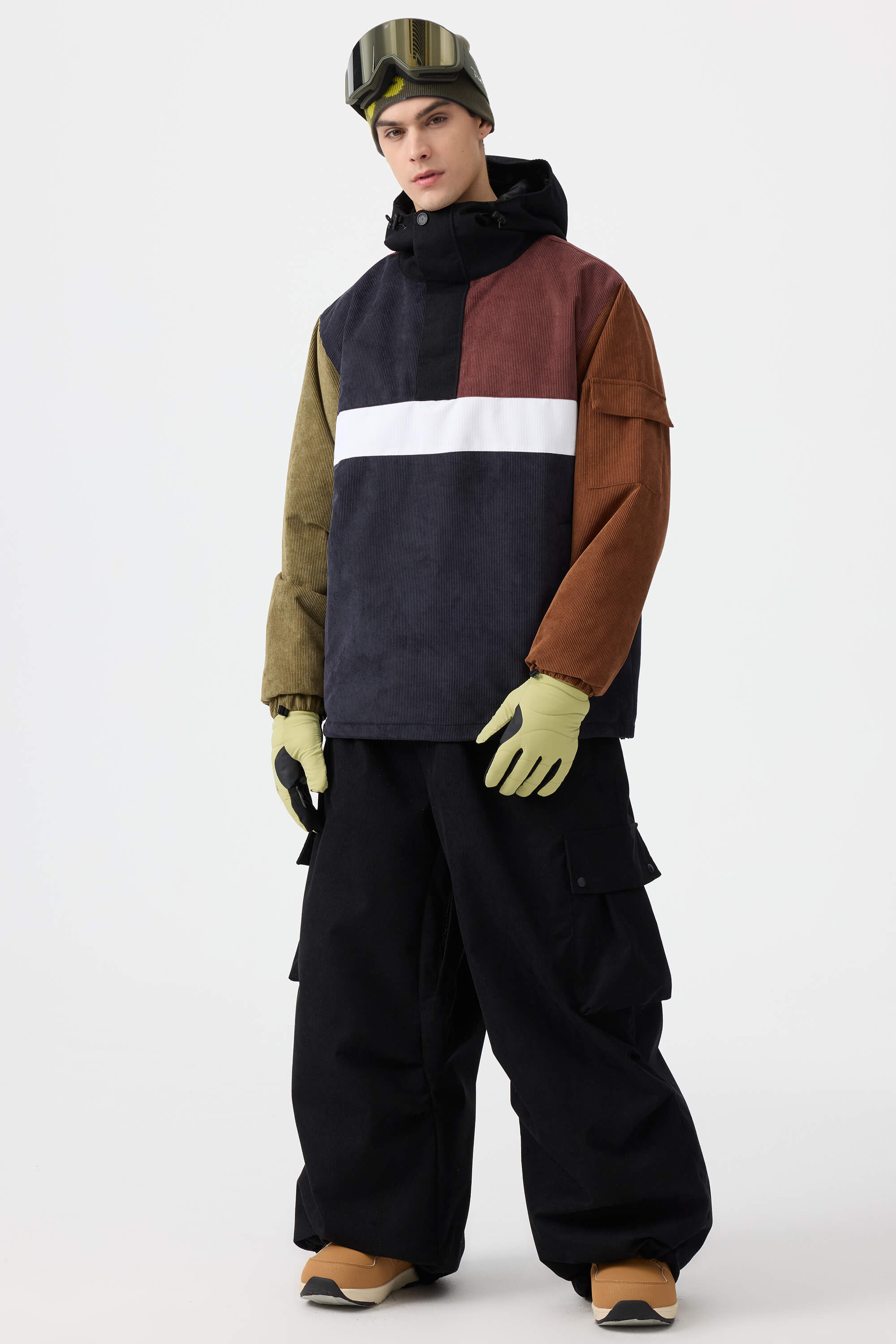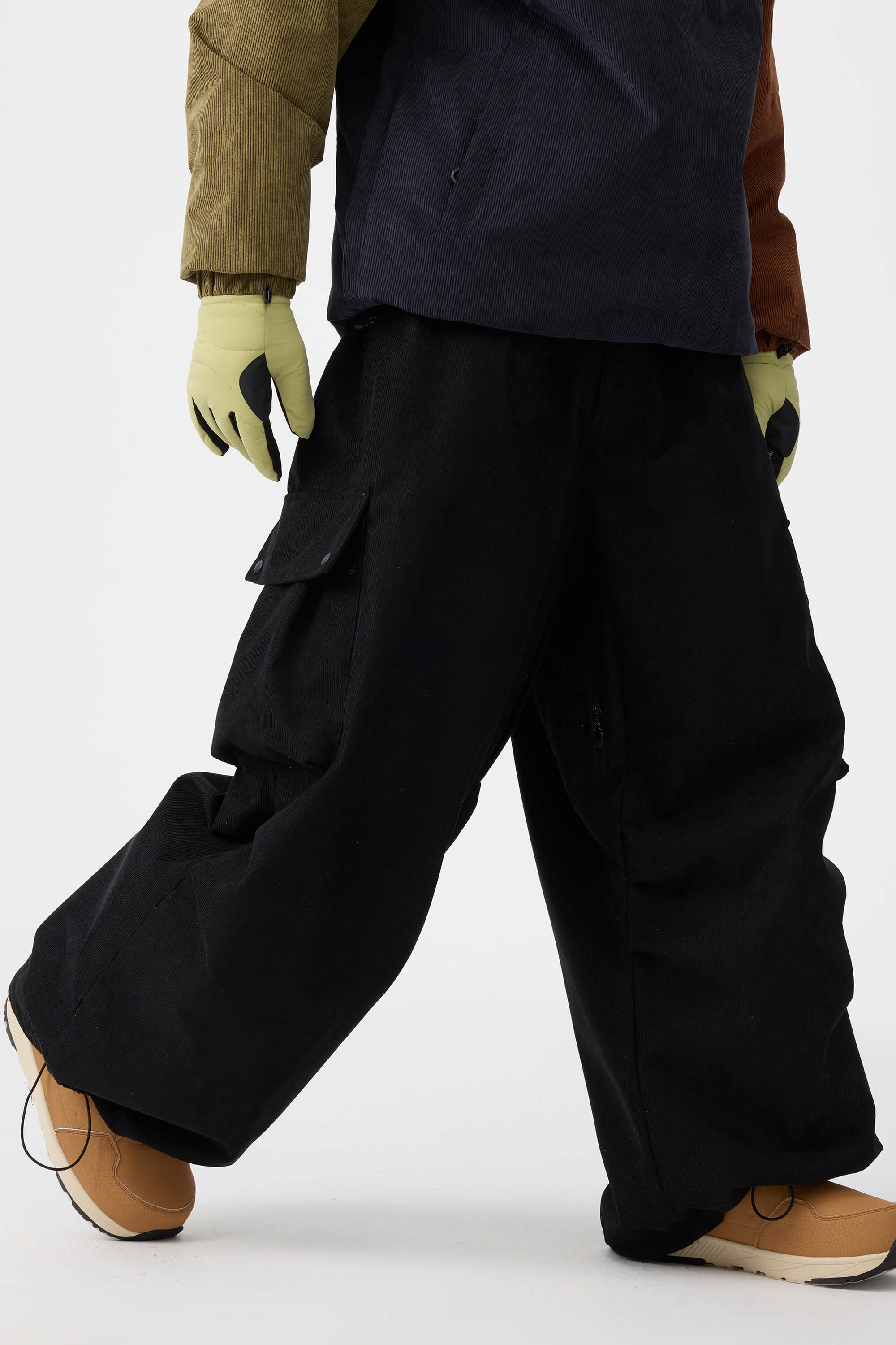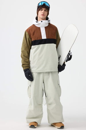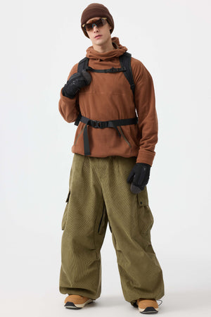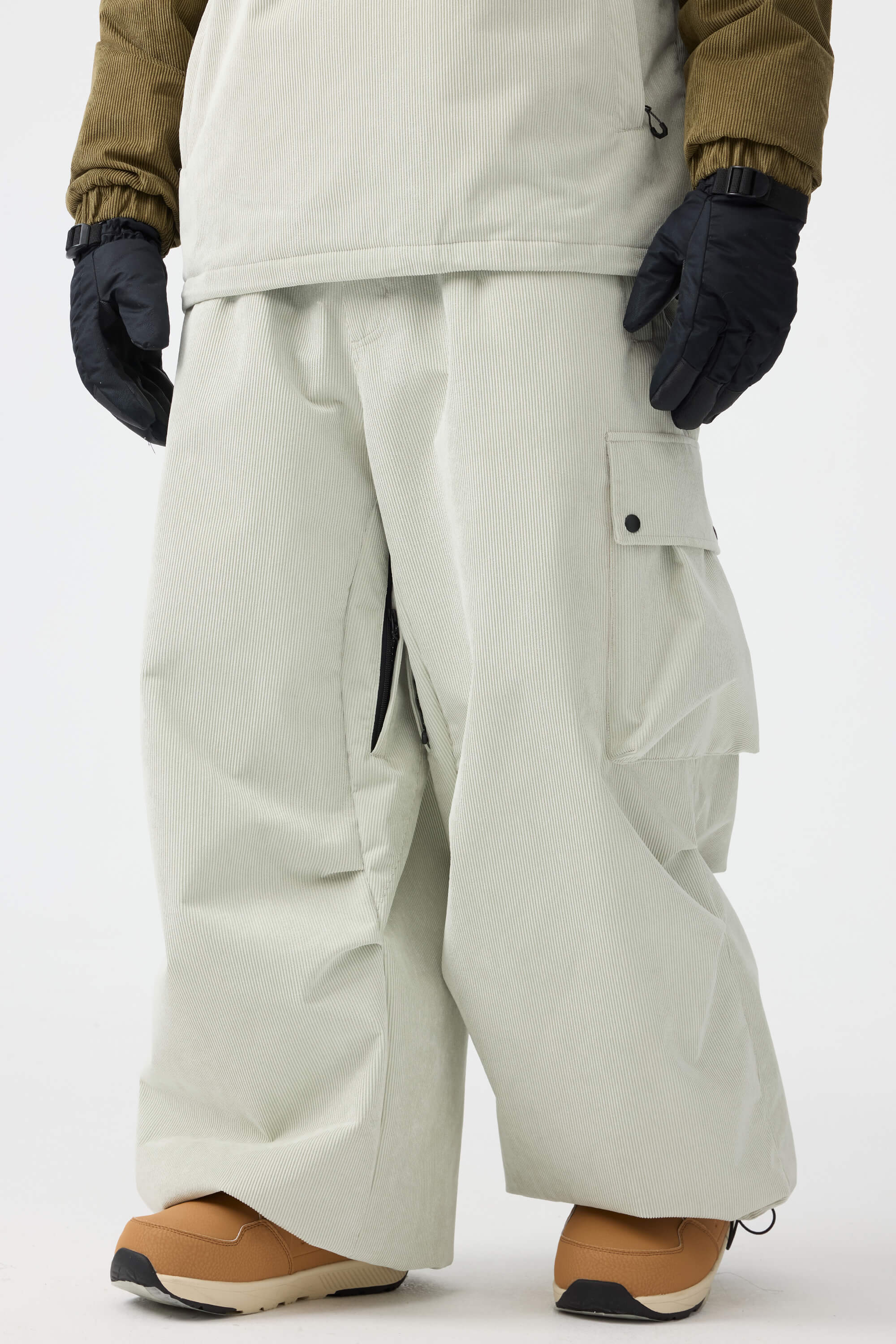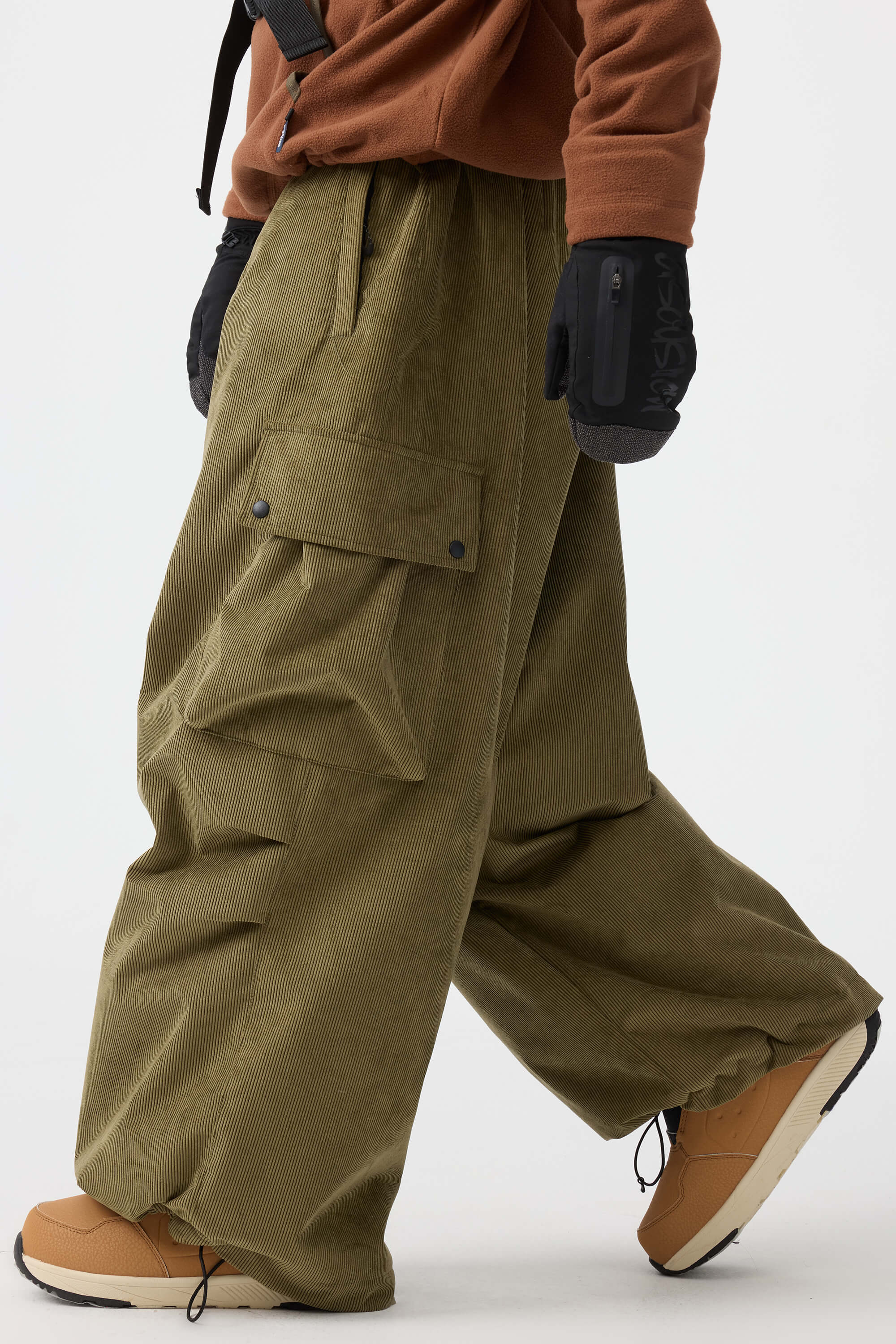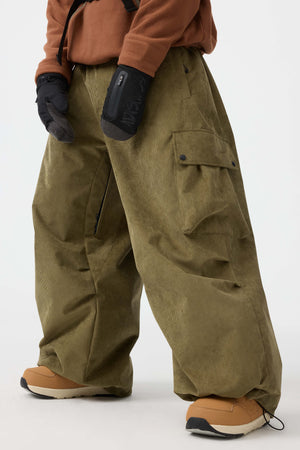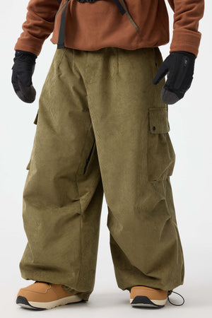 Męskie spodnie narciarskie w kolorze oliwkowym - luźny krój ze sztruksu, struktura baggy - Gsou Snow