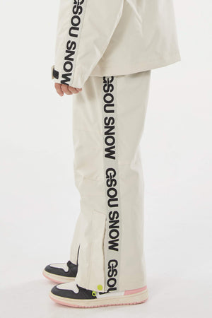 Wyróżniają się dopasowaną sportową sylwetką z rozszerzanymi nogawkami, ukrytymi bocznymi zamkami, ergonomicznymi zaszewkami na kolanach, regulowanym pasem oraz żakardowymi szelkami i logo na szwach bocznych.